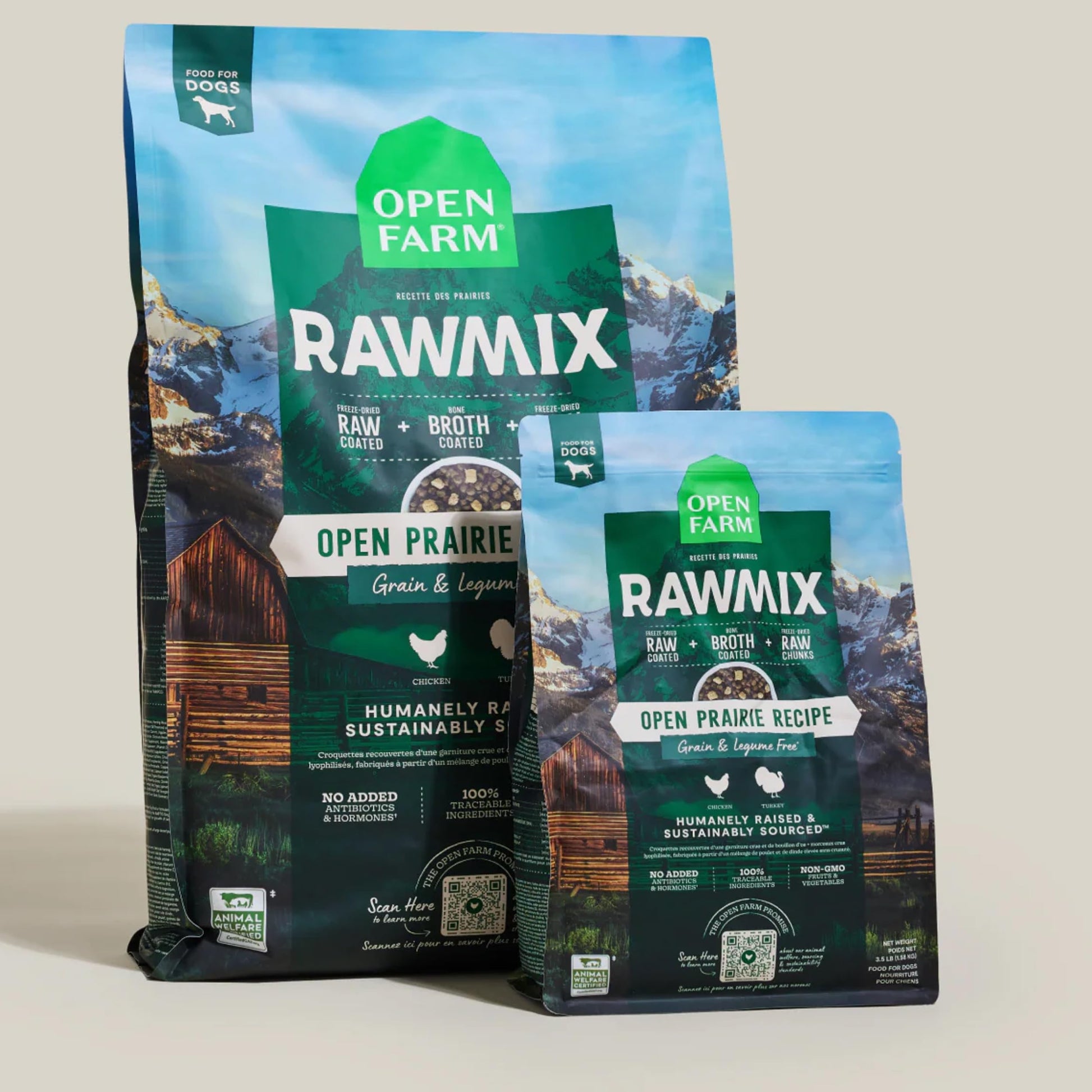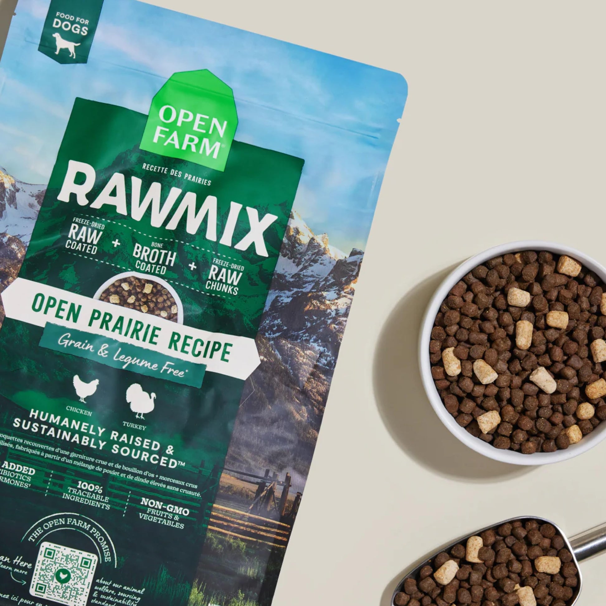 Open Farm, RawMix Grain-Free Dry Dog Food, Protein-Packed Kibble Coated in Bone Broth with Freeze Dried Raw Chunks, Chicken & Turkey, Open Prairie Recipe, 20lb Bag