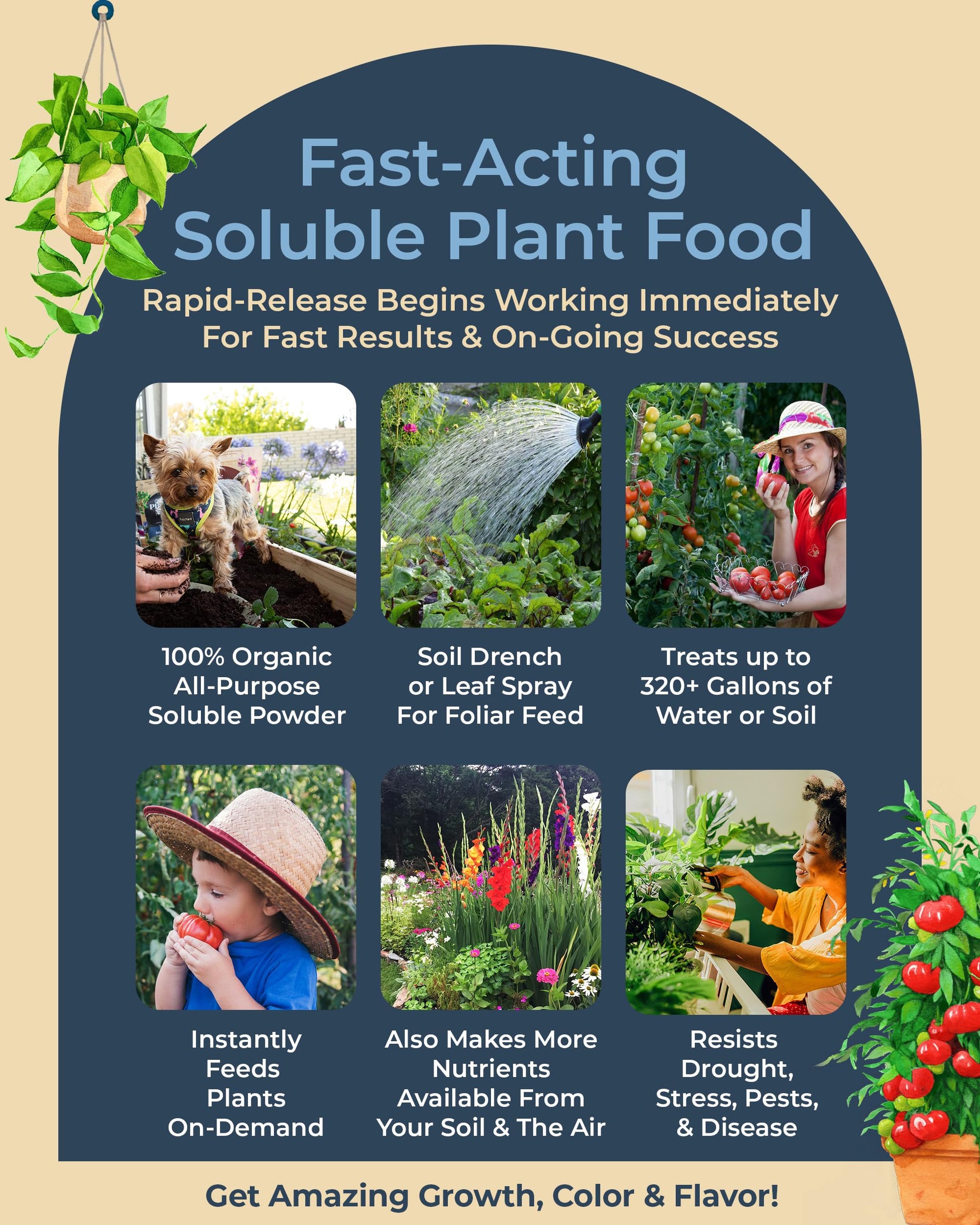 EASY & ALL PURPOSE - Simply grow healthy plants and beautiful gardens... Just add directly to seed, soil, transplant roots, existing plants, or mix with normal watering. Works for everyone, every plant, everywhere, every time!