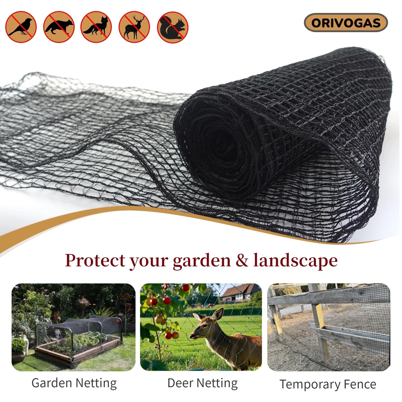 55 gsm HIGH-STRENGTH HDPE WEAVE: It's 2-3 times the weight of regular net and offers excellent tear resistance, UV protection, and corrosion resistance, keeping out deer, dogs, and other animals. It creates a strong barrier