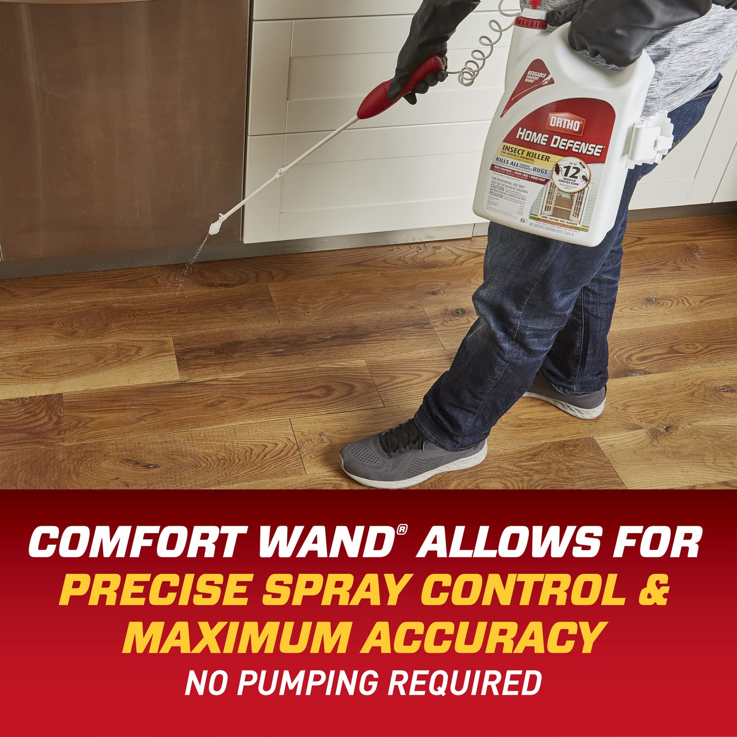 This 1.33 gal. container of Ortho Home Defense Insect Killer for Indoor & Perimeter2 comes with a battery-powered Comfort Wand, which delivers a continuous spray for easy application