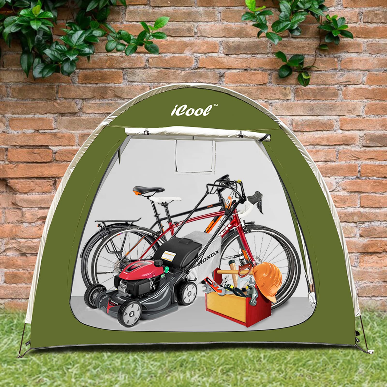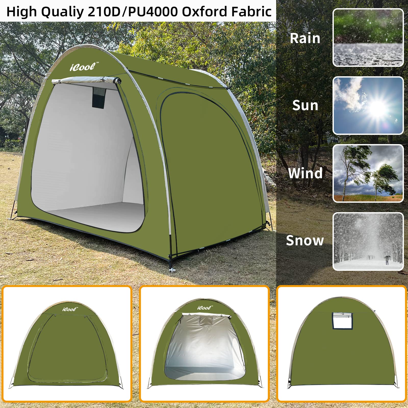 【Larger Storage Space】78 x 64 x 60 inches, can accommodate four adult bicycles, As an outdoor storage tent, it can store long-handled garden tools, furniture mats, bicycles, motorcycles, lawn mowers, coolers, swimming pool toys and other items. You can also use it as a campsite or any other purpose you want.
