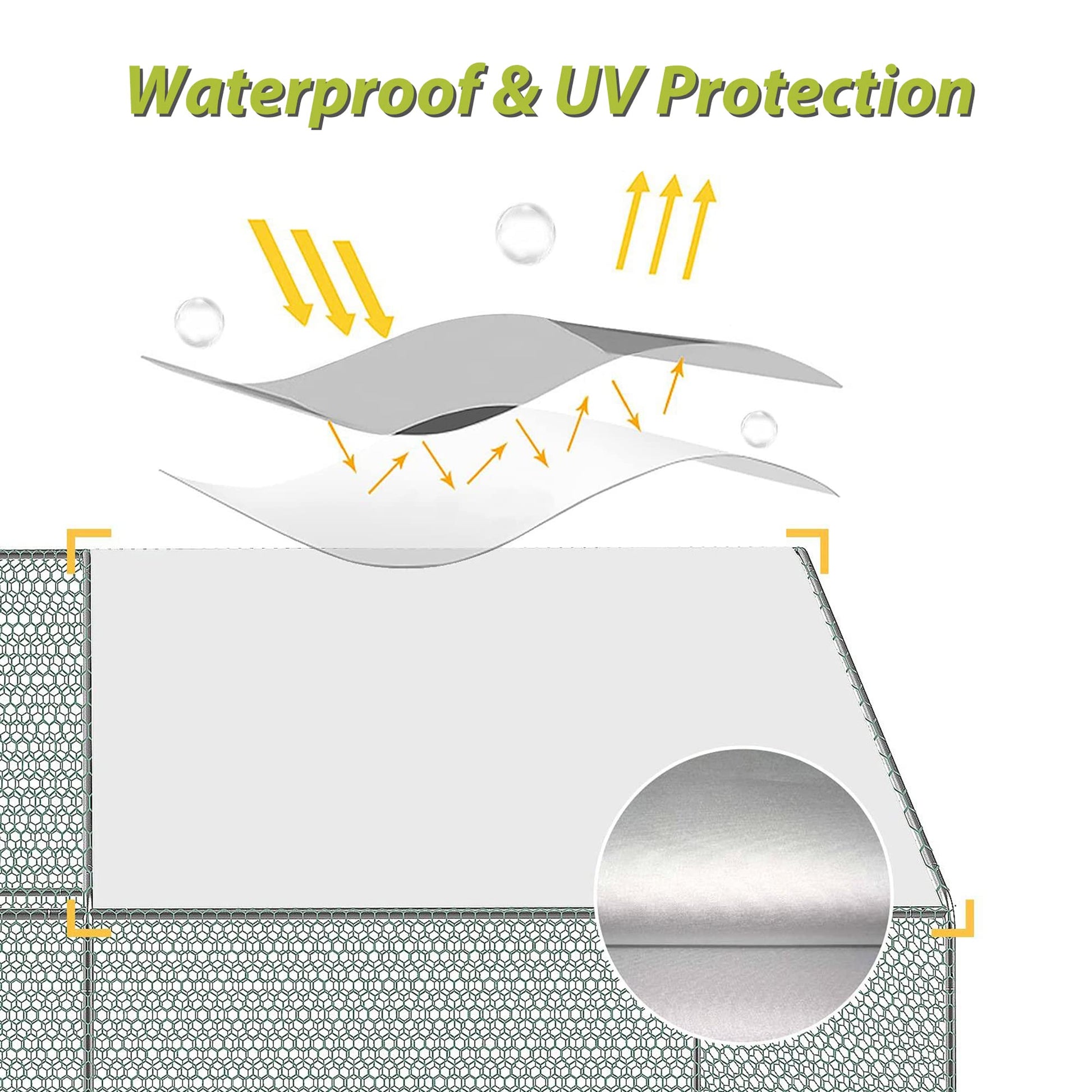 【WATERPROOF CANOPY COVER】This Top replacement Roof Cover is PE Material, which is Anti-UV, Waterproof and Can Protect many small animals,such as Hen,chickens, rabbits, ducks, and more. against Dust, Sun, Wind, Rain and Snow. FRAME NOT INCLUDED