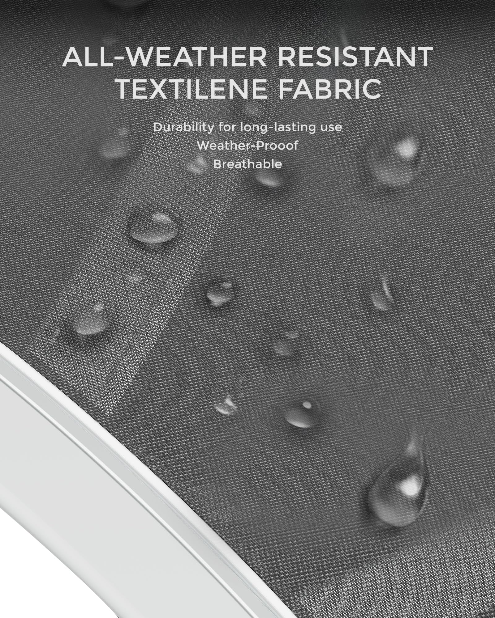 2,Breathable & Weather-Resistant Superior Textilene mesh stays cool in heat, dries quickly, and resists water, UV rays, and sagging for lasting comfort.