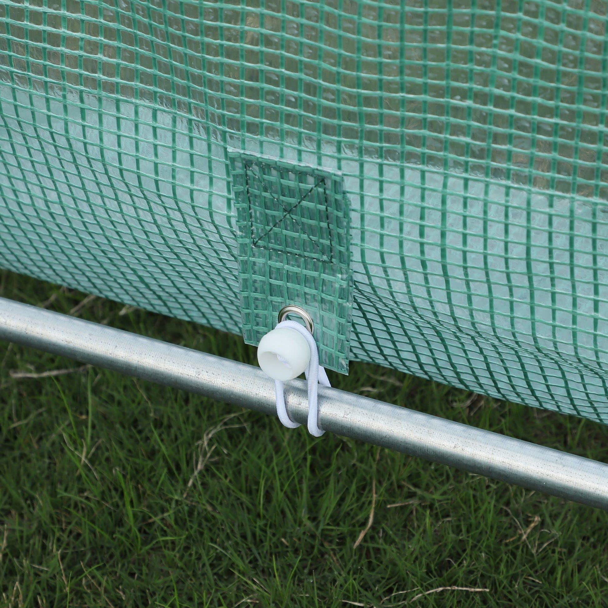 Plastic Cover: The tough PE plastic cover protects plants while allowing nourishing sunlight to pass through. The cover can be easily attached to the frame with included tether balls and double-side tape.