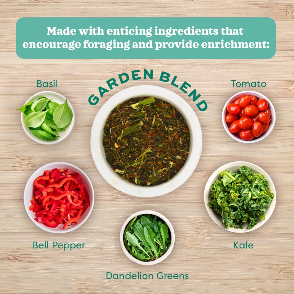 ADD FUN TO MEALTIME: Packed with kale, bell pepper, and basil, our Garden Blend hay topper adds exciting flavors and textures to hay, encouraging natural foraging instincts