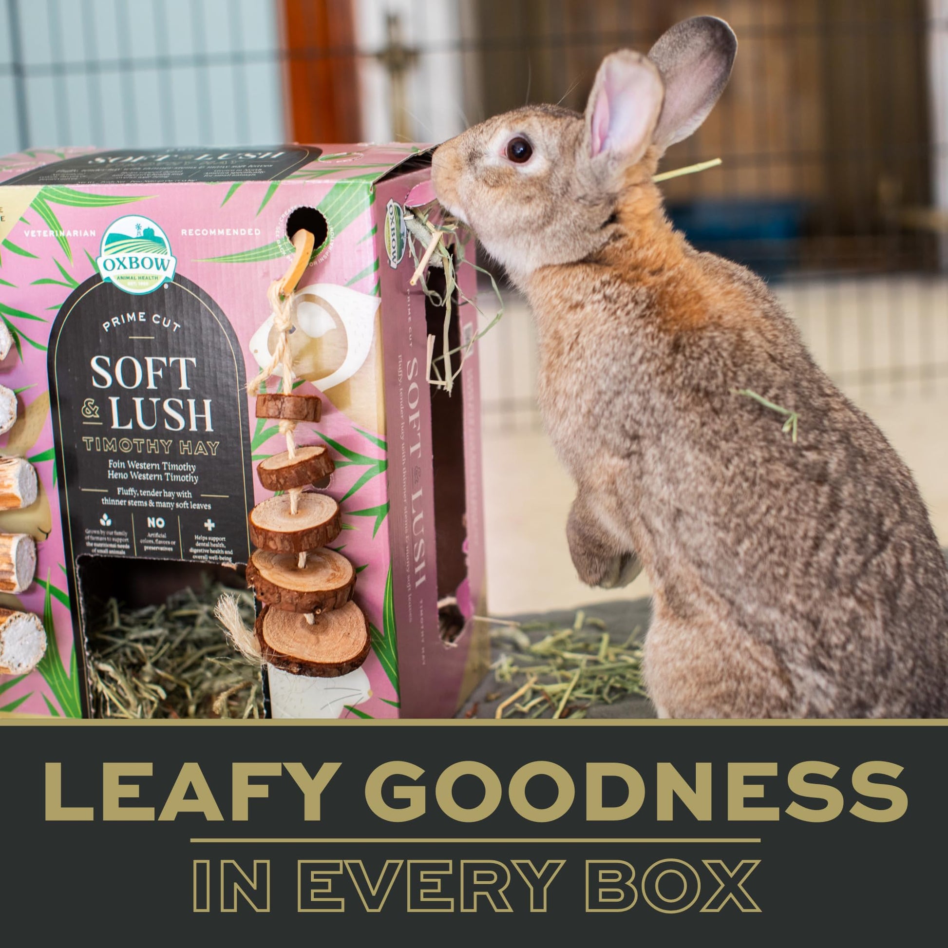 SOFTLY COMPRESSED & PRE-PORTIONED: Oxbow Prime Cut Soft & Lush Timothy Hay is gently compressed and conveniently pre-portioned to ensure maximum freshness, making it easy to serve while providing a premium, nutritious experience for your small pet