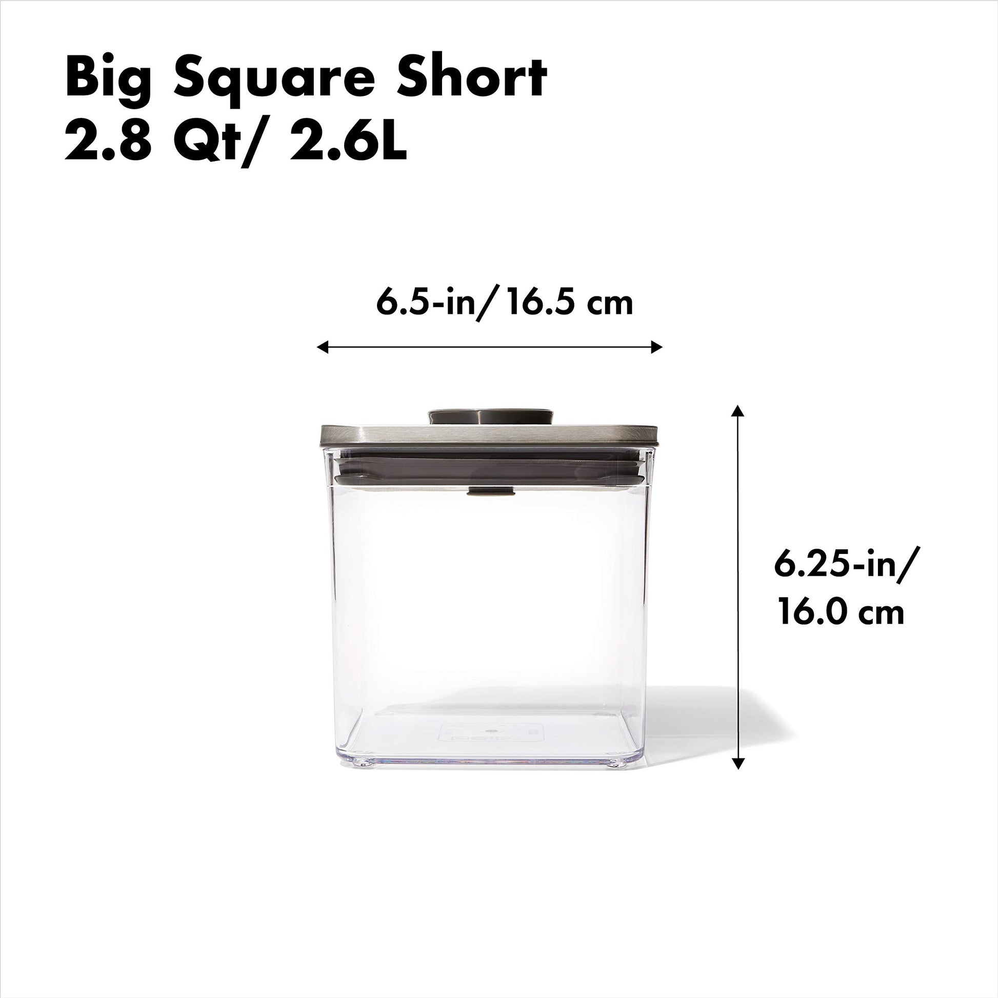 OXO Steel POP Container Big Short Sqaure - 2.8 Qt for Cereal, Grains and More Grey