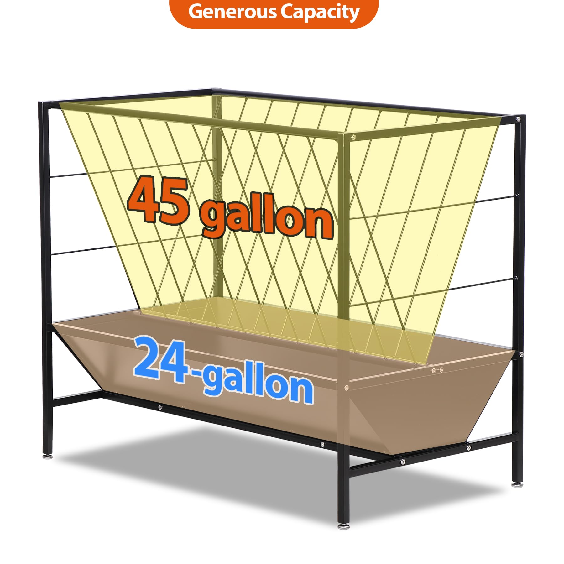 Generous Capacity: Our pasture feeder boasts a 24 gallon feed pan at the bottom, ensuring your animals have constant access to nutrition; the top grass rack provides an additional 45 gallon of space for forage, allowing your livestock to graze freely; it's large enough to accommodate the needs of your animals while remaining easy to manage