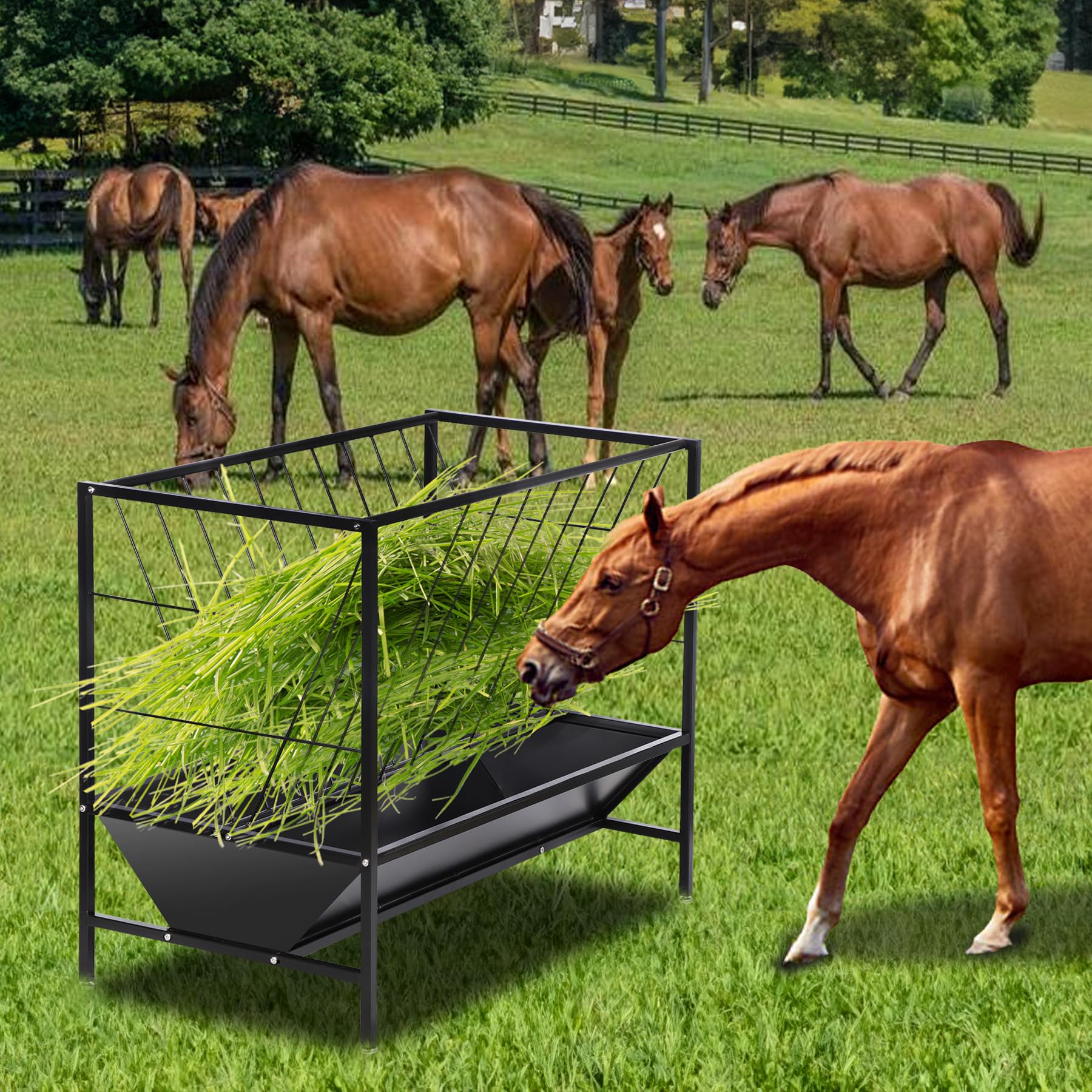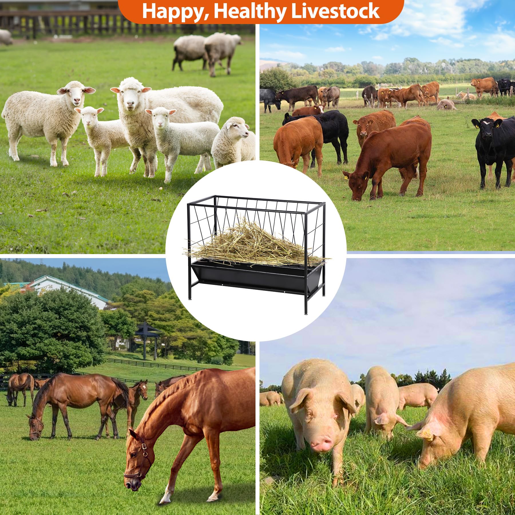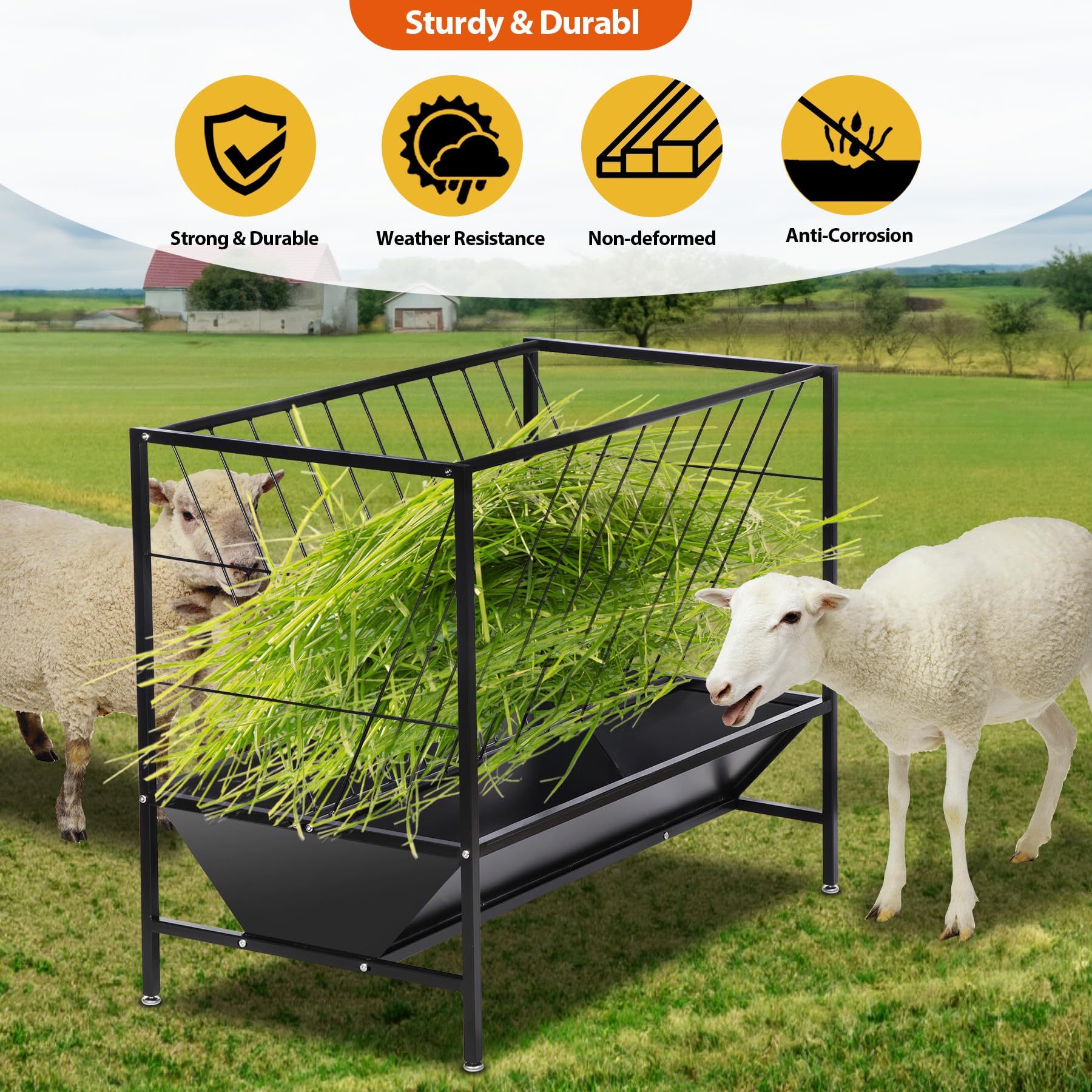 Sturdy and Durable: Built from high-quality robust galvanized steel with black powder coated, this pasture hay feeder is designed to endure the demands of outdoor use; it's your reliable companion for feeding season after season