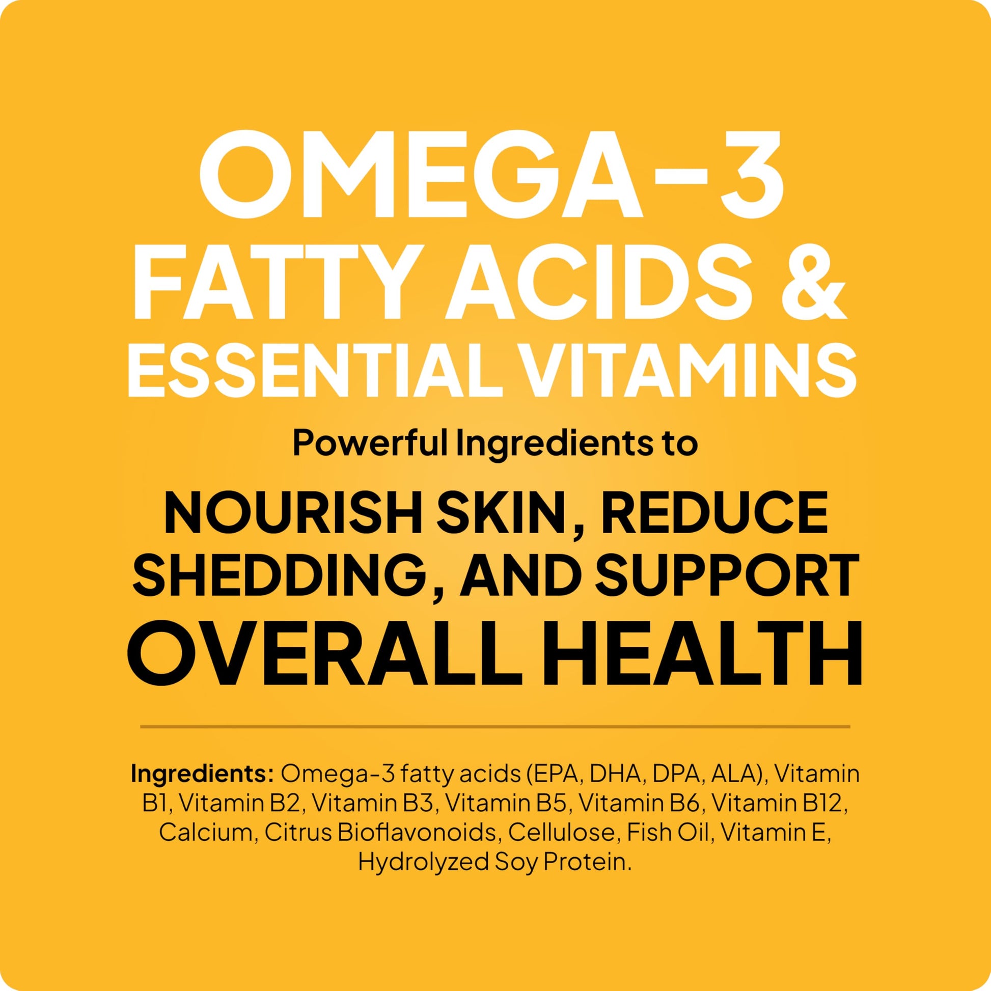 Veterinarian-Recommended Formula – This dog coat supplement is designed to promote skin health, immune balance, and overall well-being. The advanced formula is perfect for small breeds needing extra nutritional support for healthy skin, reduced shedding, and a glossy coat.