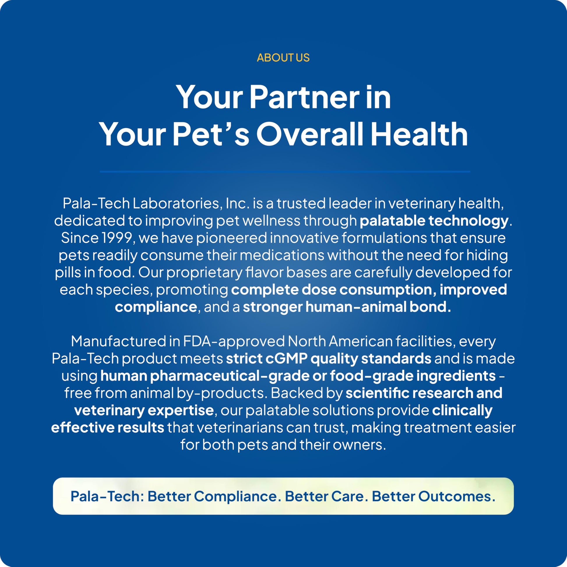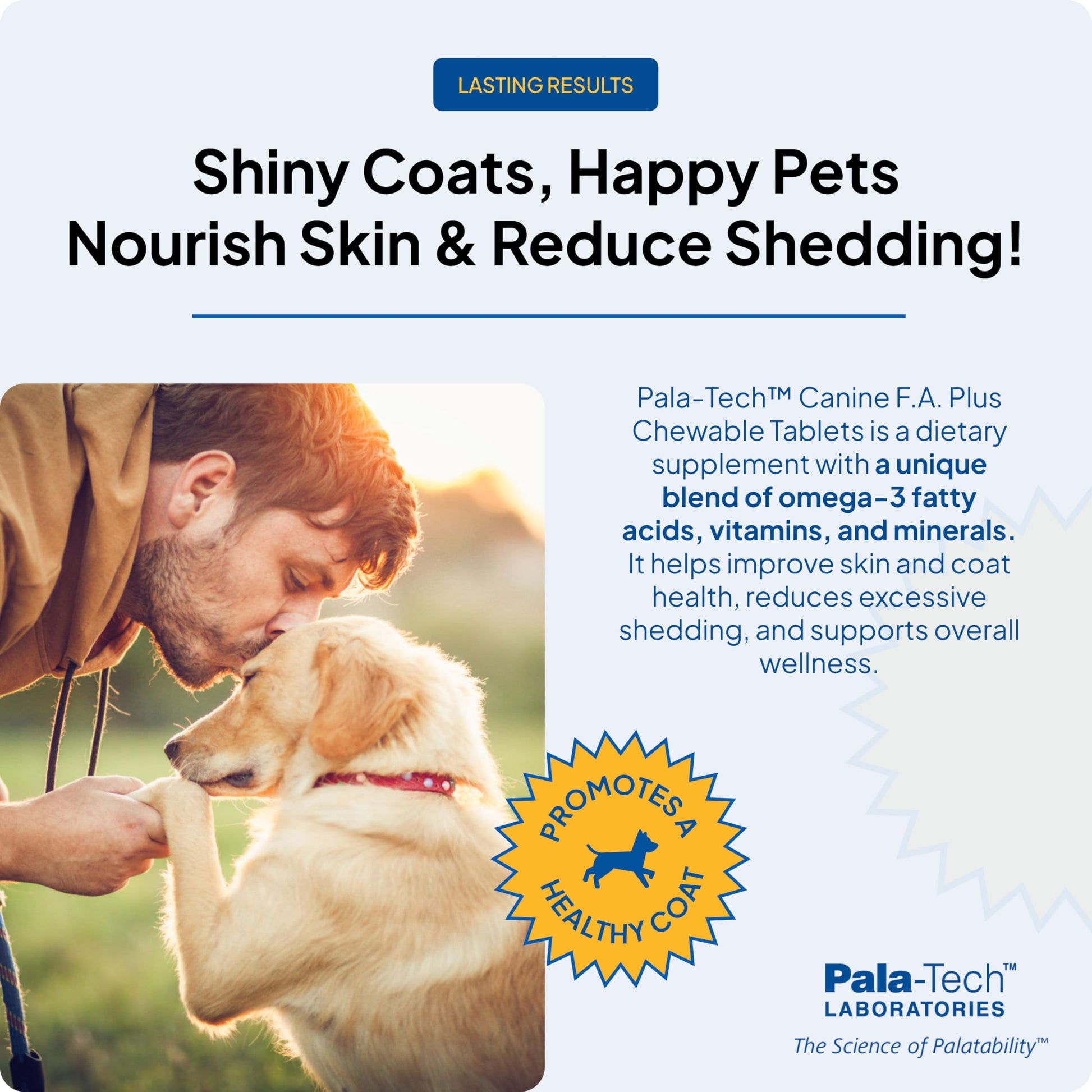 Complete Skin & Coat Support – Pala-Tech FA Plus Chew Tabs contain omega-3 fatty acids to promote healthy skin and a shiny coat. These essential nutrients help reduce itching, dryness, and shedding, making them a great dog supplement for maintaining optimal skin health in small breeds.
