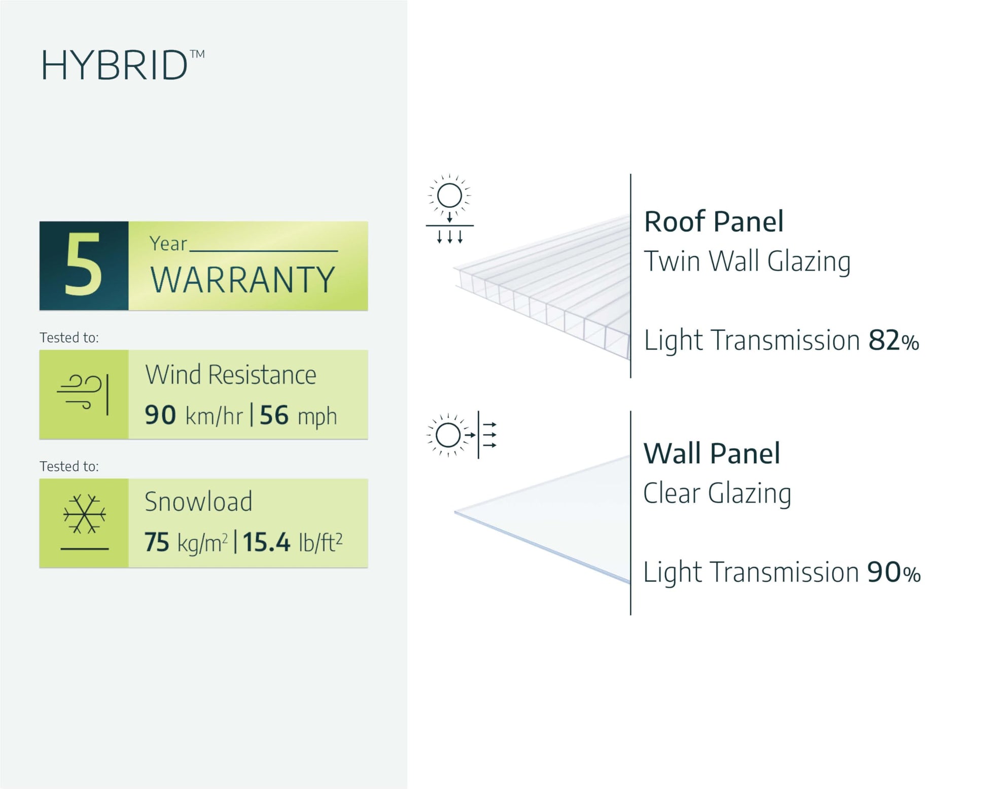 TWO PANEL TYPES PROVIDE ULTIMATE BALANCED GROWING CONDITIONS - Virtually unbreakable twin-wall polycarbonate roof panels protect from strong sunlight exposure while crystal-clear polycarbonate wall panels provide over 90% light transmission.