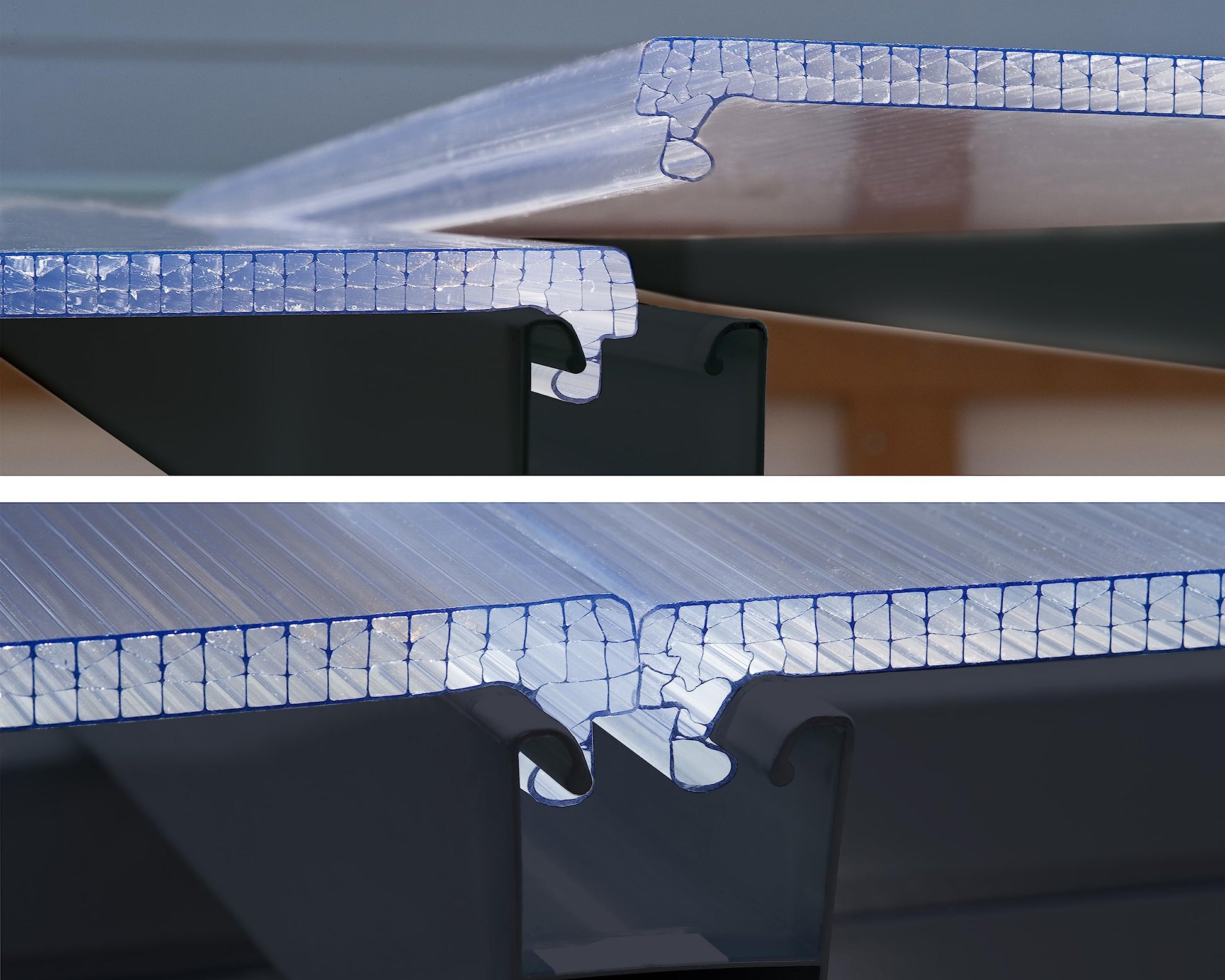 Sealed multiwall edges eliminate dirt and moisture from entering roof panels
