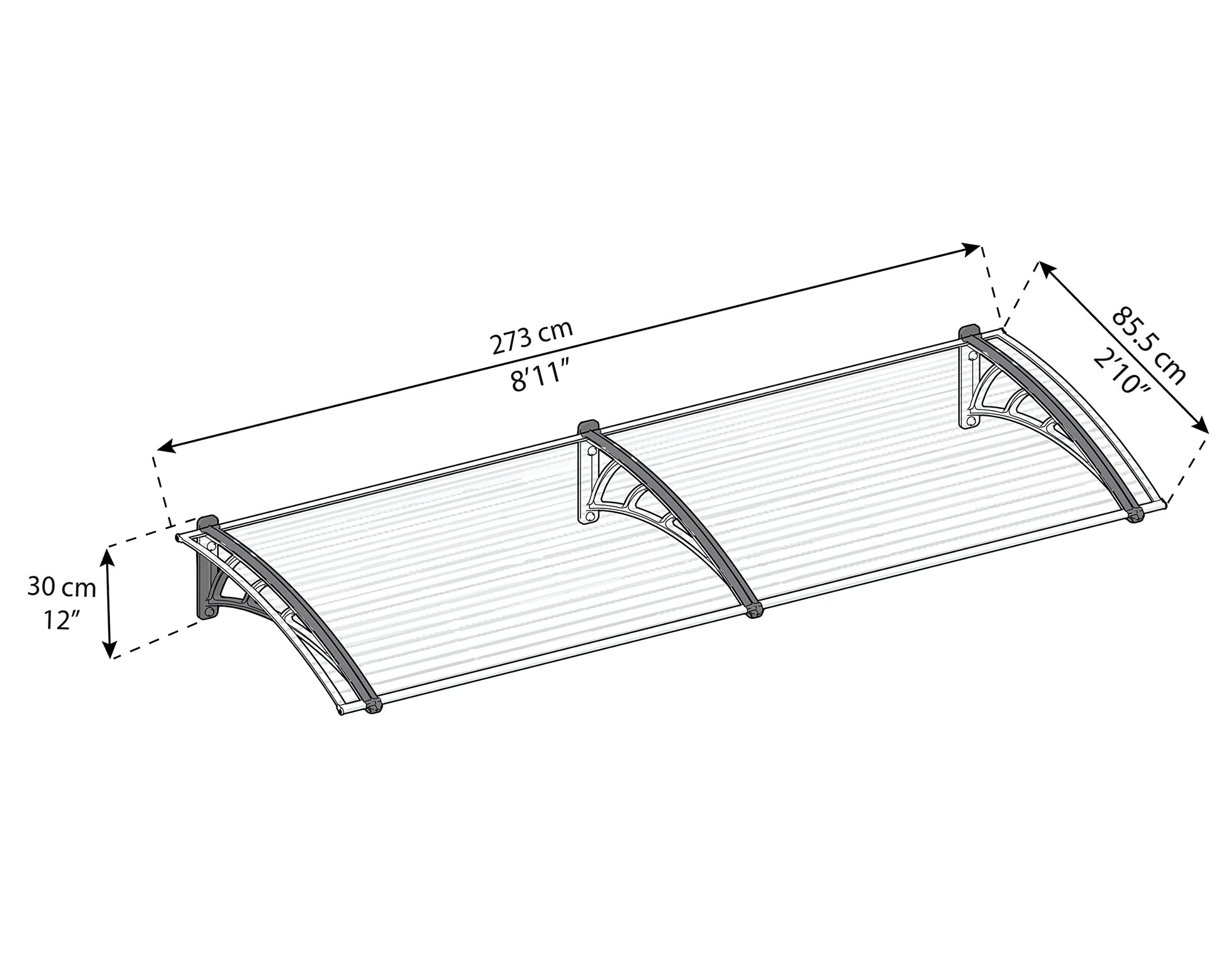 Palram - Canopia Neo 2700-9' x 3' Window & Door Awning for Door Entrance, High-End Polycarbonate Patio Canopy with Clear Panels, UV Protection, Modern Gray Metal Frame, Weather Resistant Overhang