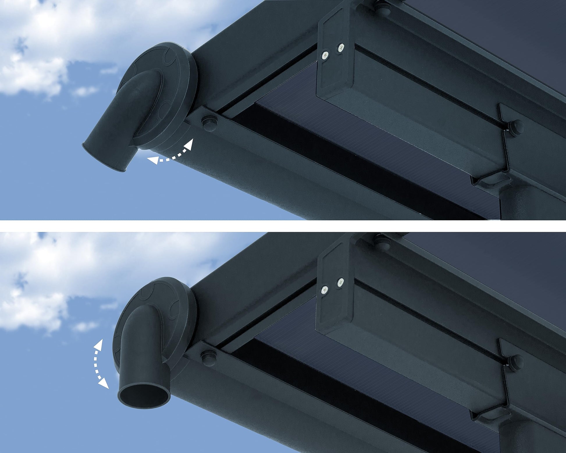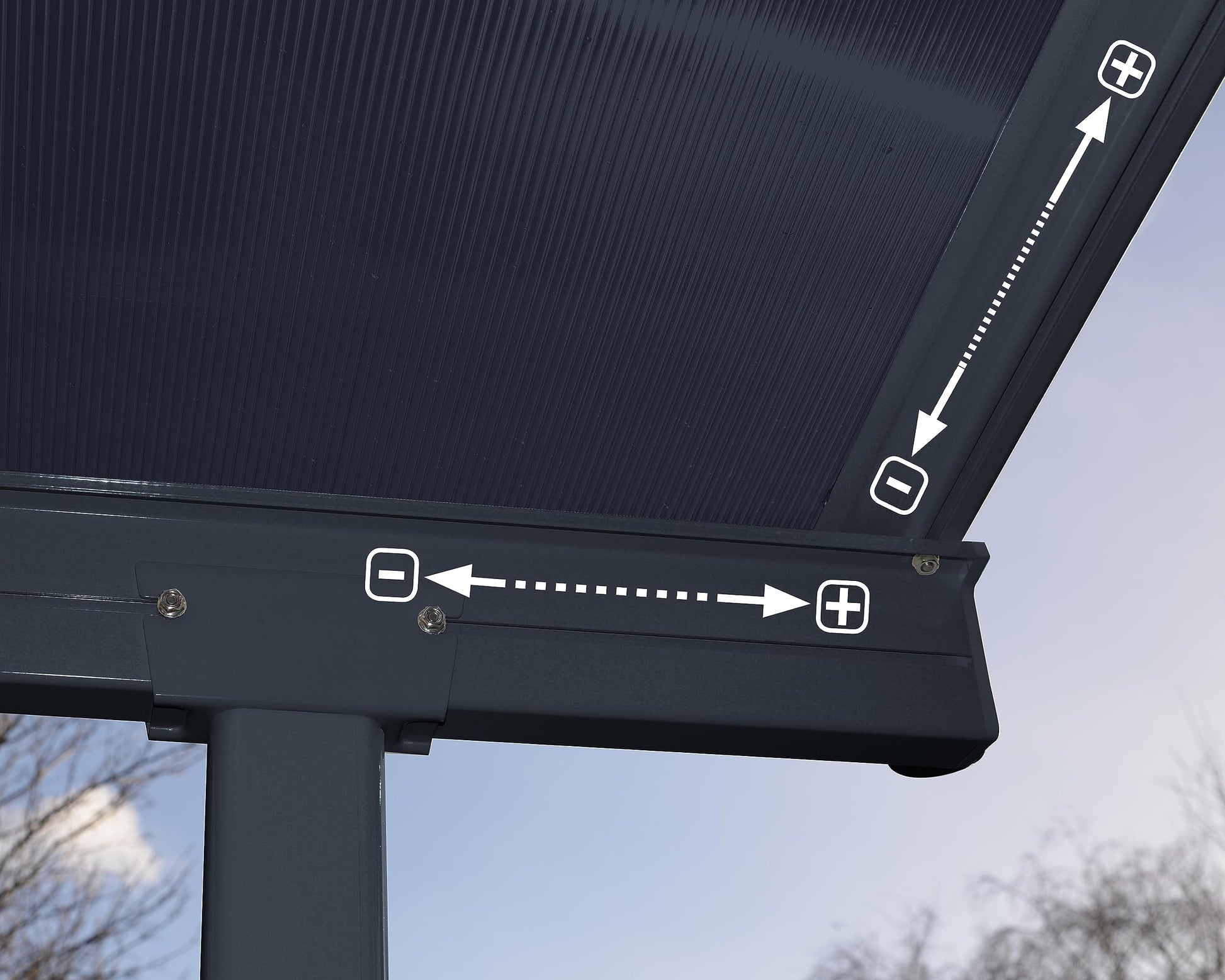 INTELLGENT DESIGN THAT PROTECTS AGAINST MORE THAN JUST HARMFUL UV RAYS - Front aluminum gutter directs rainwater to the side for additional protection from the elements. Limits the spread of rust with its gray powder coated frame made of heavy duty aluminum and laser cut galvanized steel connectors