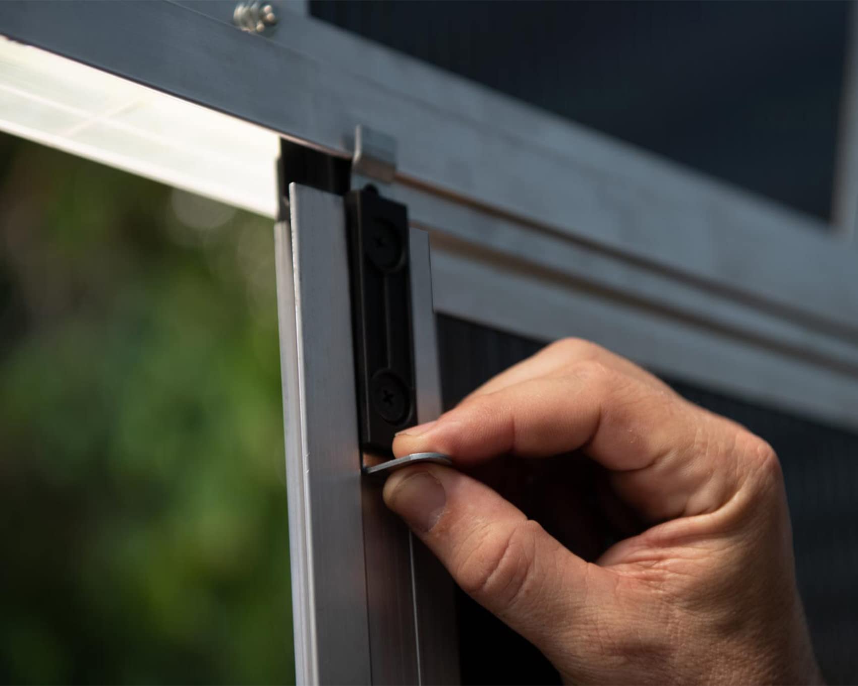 STEP-BY-STEP DIY INSTRUCTIONS DESIGNED FOR HOMEOWNER INSTALLATION - The included DIY assembly kit makes installation a breeze. Ready to assemble with Easy Slide system for quick installation. Foundation required (not included).