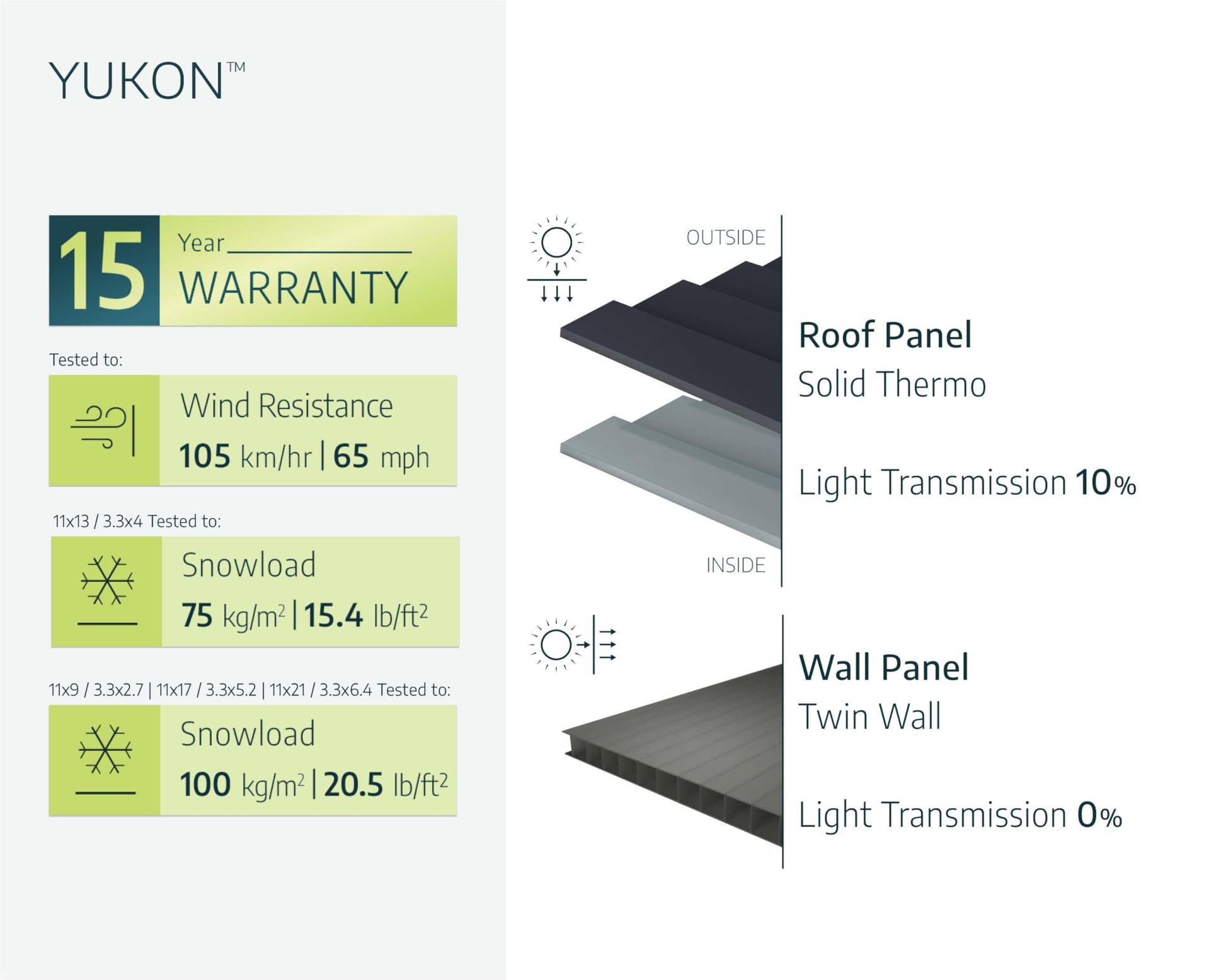 THOUGHTFUL ENGINEERING THAT OFFERS YEAR ROUND PROTECTION - Virtually unbreakable polycarbonate panels block 100% of harmful UV rays while unique shingled roof transmits natural sunlight while remaining opaque in appearance.