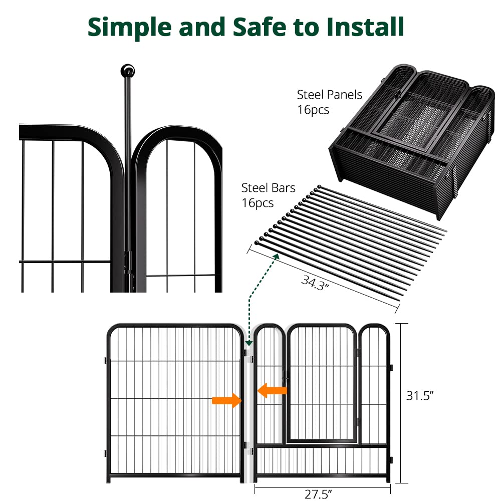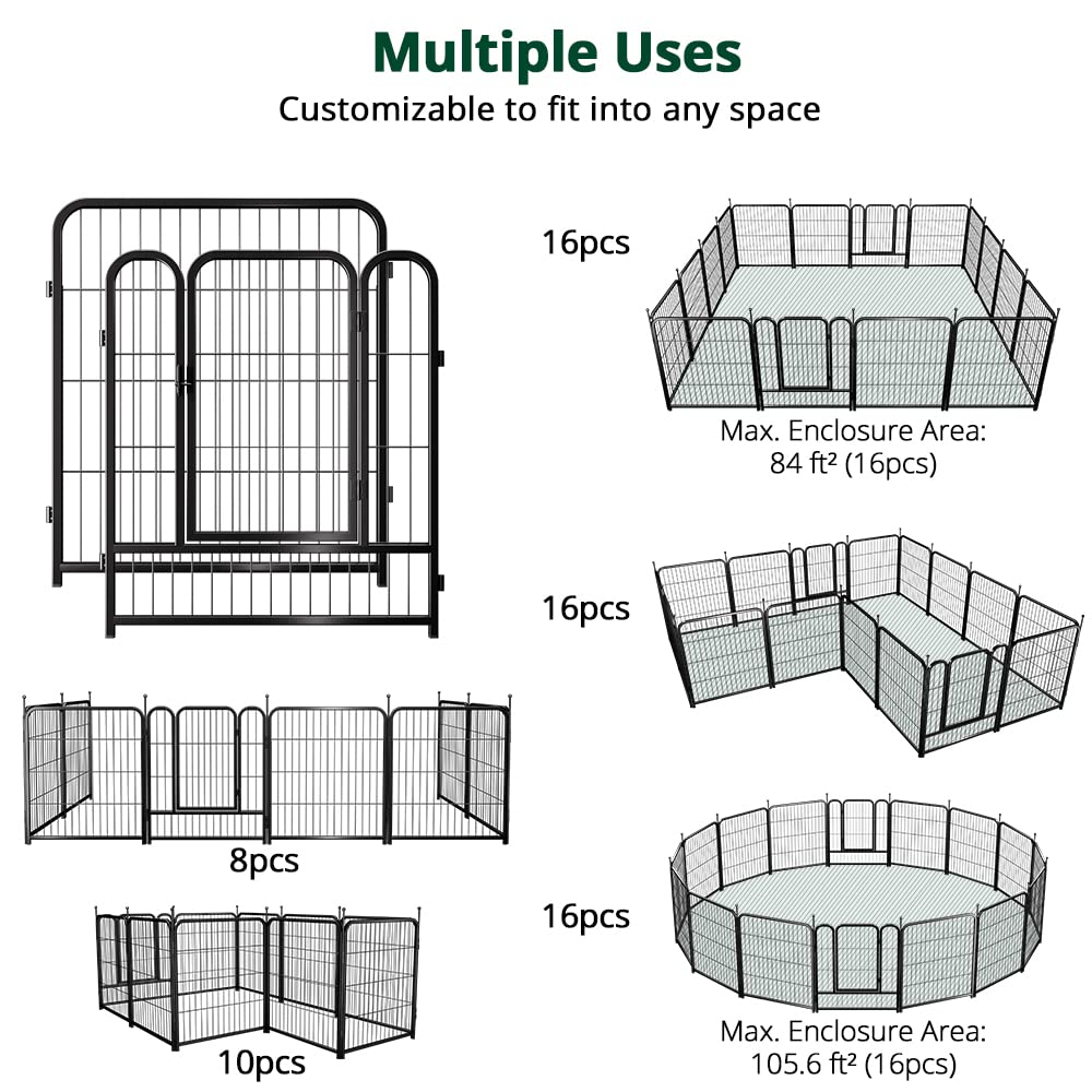 Escape-Proof Design: The 32" high dog pen prevents escape attempts. The gravity automatic invisible door lock stops pets from opening the door on their own. Leave your pet in a safe area without worrying about them escaping