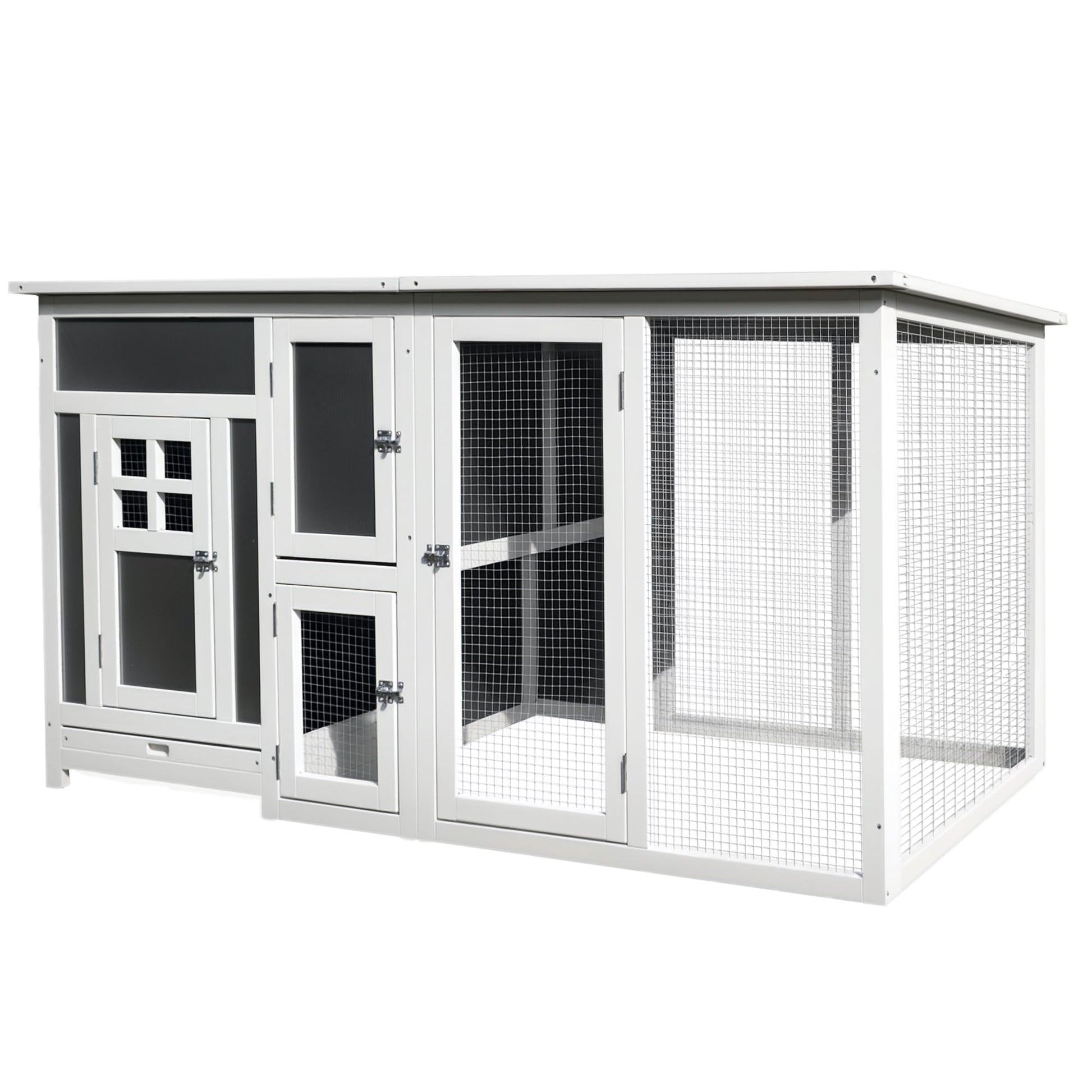 Weatherproof Roofing: The polycarbonate panels roof provides reliable protection against the elements, keeping your chickens safe and dry in any weather.