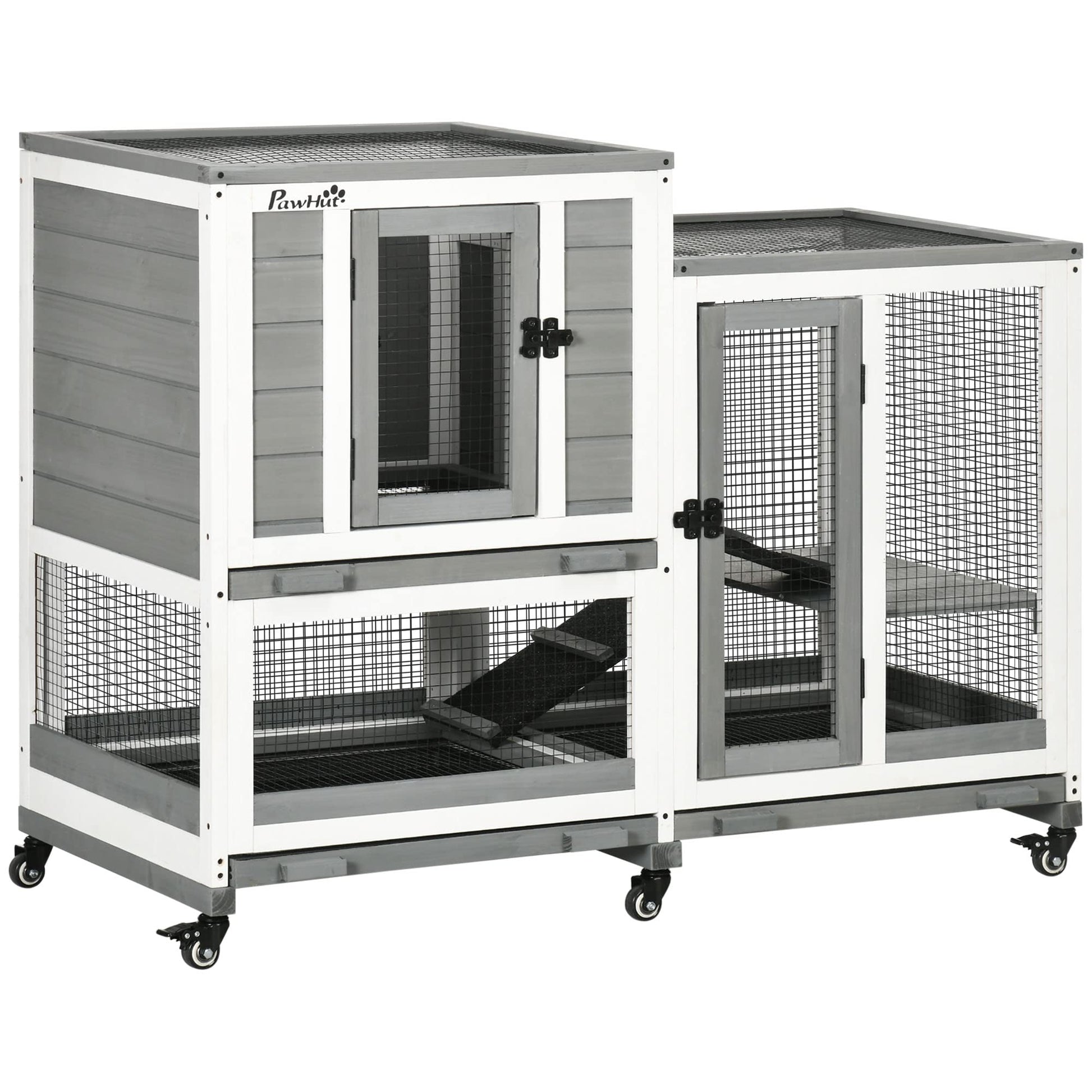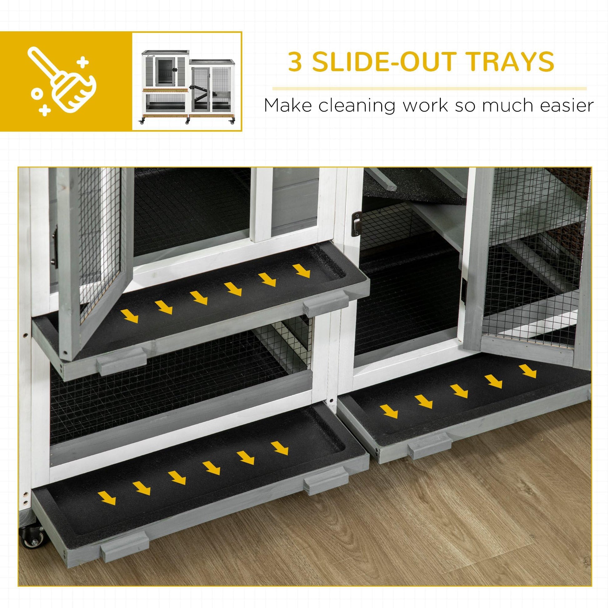 Easy Transport: From rolling your furry friend into the sunlight to rearranging things, our bunny hutch has six wheels to ensure convenience. Two of the rabbit cage wheels have brakes to keep it in place.