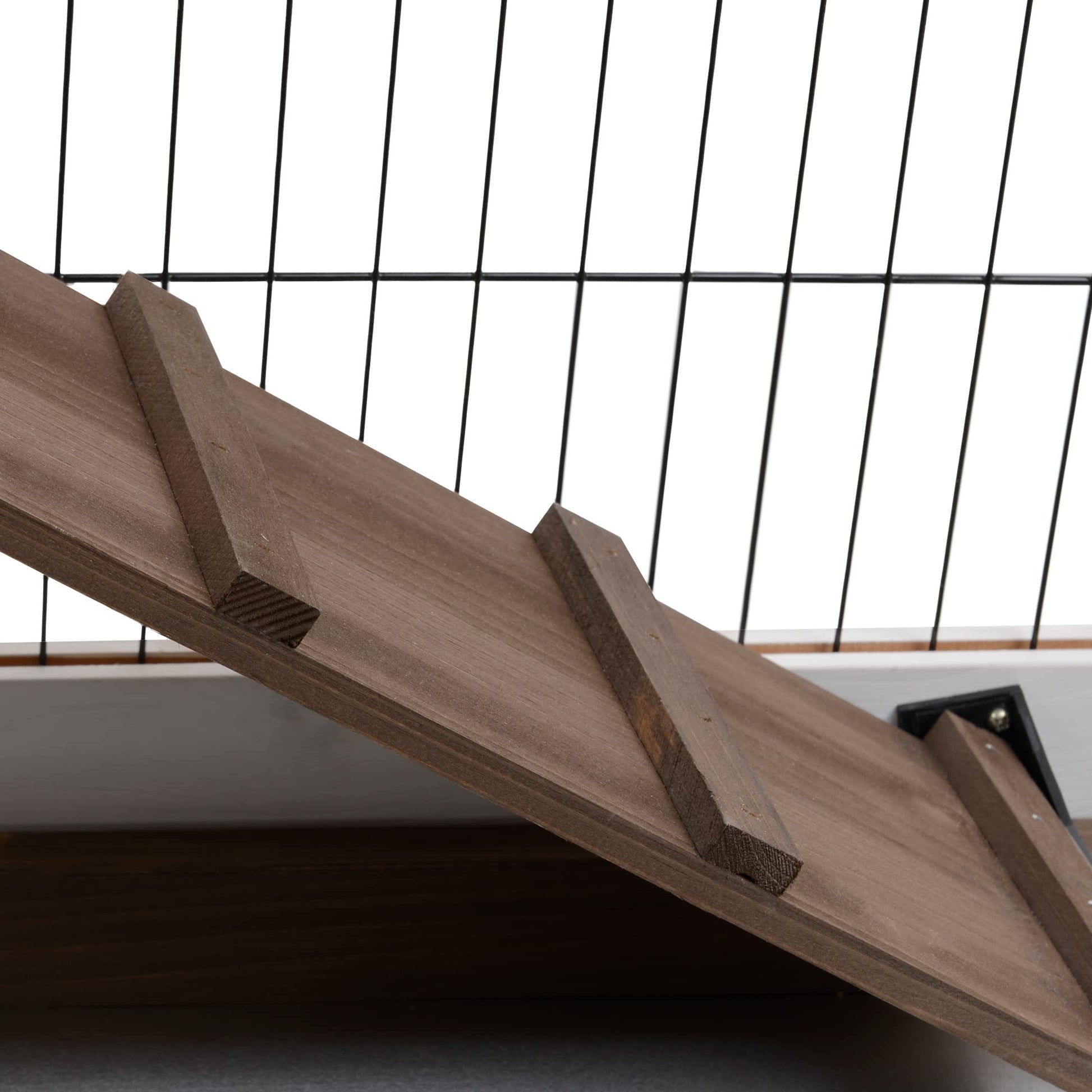 Wood Construction: The indoor rabbit hutch is made of solid fir wood with a protective painting for daily use, creating a comfortable and secure home for your pet.