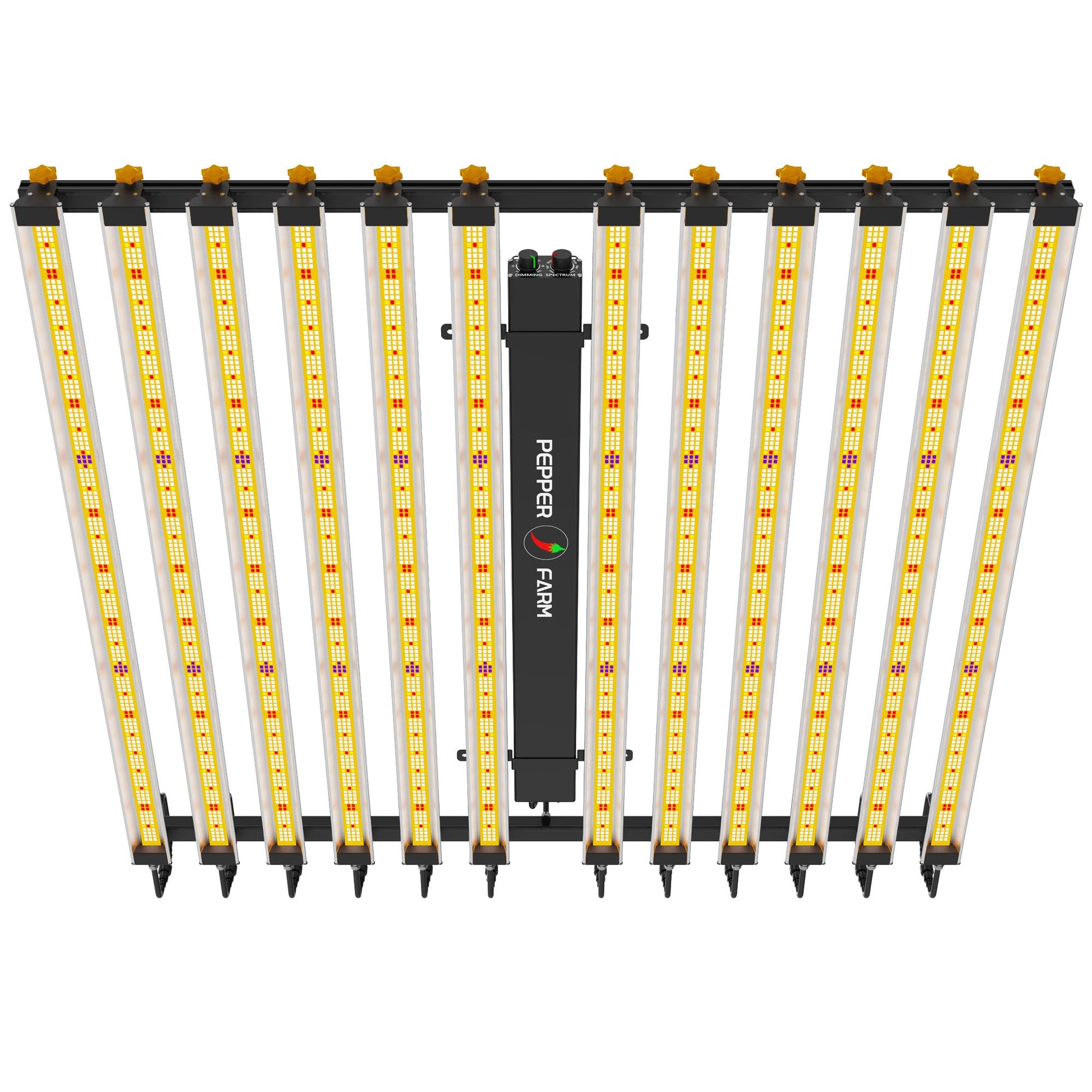 HIGH OUTPUT &LOW ENERGY CONSUMPTION:The PF12000 grow light with unique designed 12 extended LED bars to provide more uniform canopy coverage, especially to the outer edges cultivation areas. 1200 watts 5088LEDs , Coverage for 5x5 feet high-yielding full-cycle growth