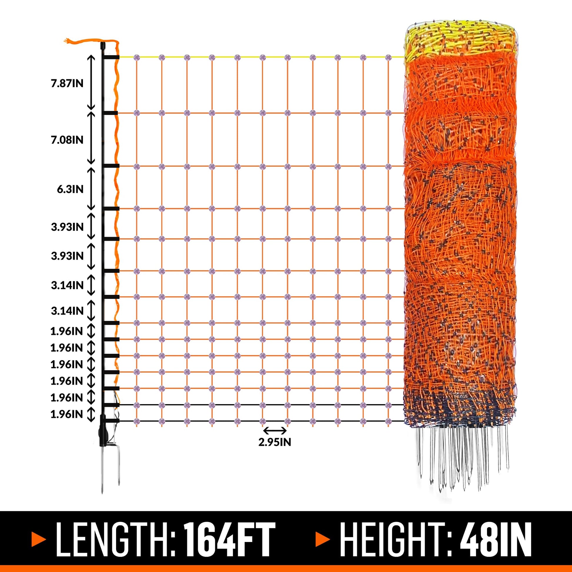 Pet & Livestock HQ Electric Fence Poultry Netting 48" x 164' - Portable Pre-Assembled Electric Net Fencing for Goats, Sheep, Lambs in Farms, Ranches, and Gardens (19 Posts, 2 Spikes)