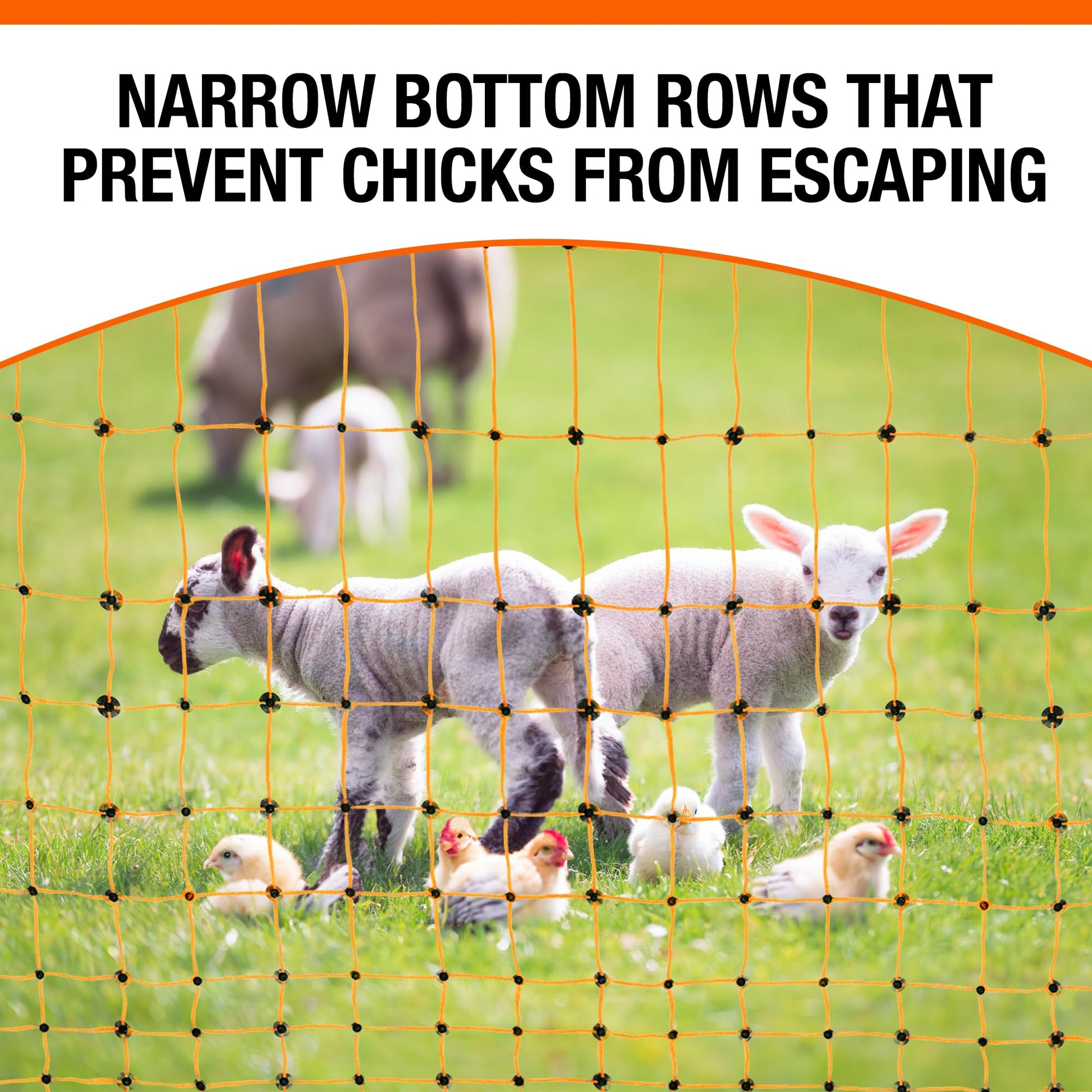 Protect your poultry: Pet & Livestock HQ 48" tall net and 164’ long is recommended for active birds that like to fly. It can contain and graze livestock other than poultry, such as sheep & goats. The tall fence netting is more likely to keep out large garden predators such as coyotes, dogs, skunks, raccoons, foxes