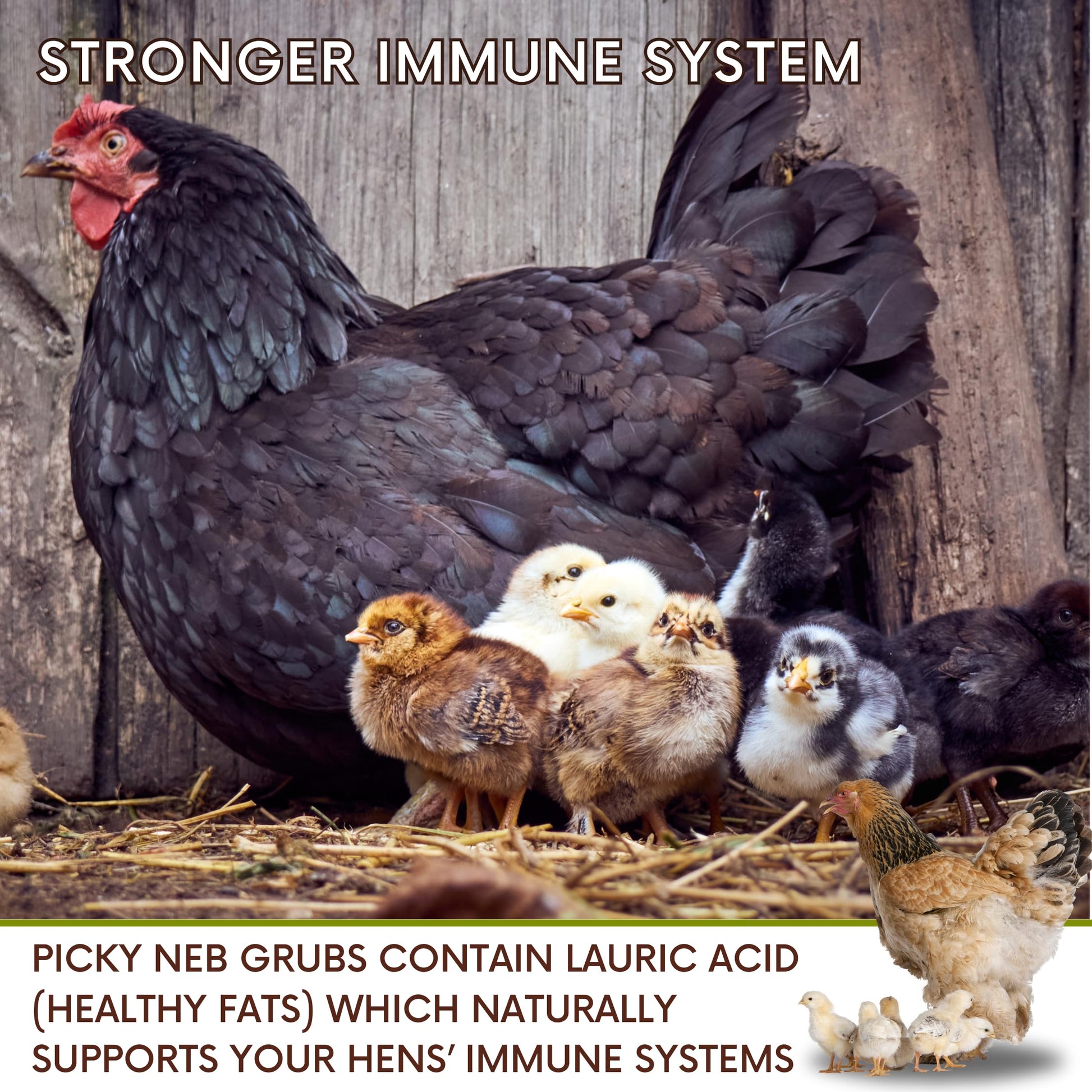 ✅ IMMUNE SYSTEM BOOSTER - Picky Neb large grubs are the guardians of your baby chicks' immune systems. Packed with Lauric Acid (healthy fats), they're the defenders your chicks need to ward off the common cold and chicken sniffles. It's like a tiny army of health heroes for your feathered friends!