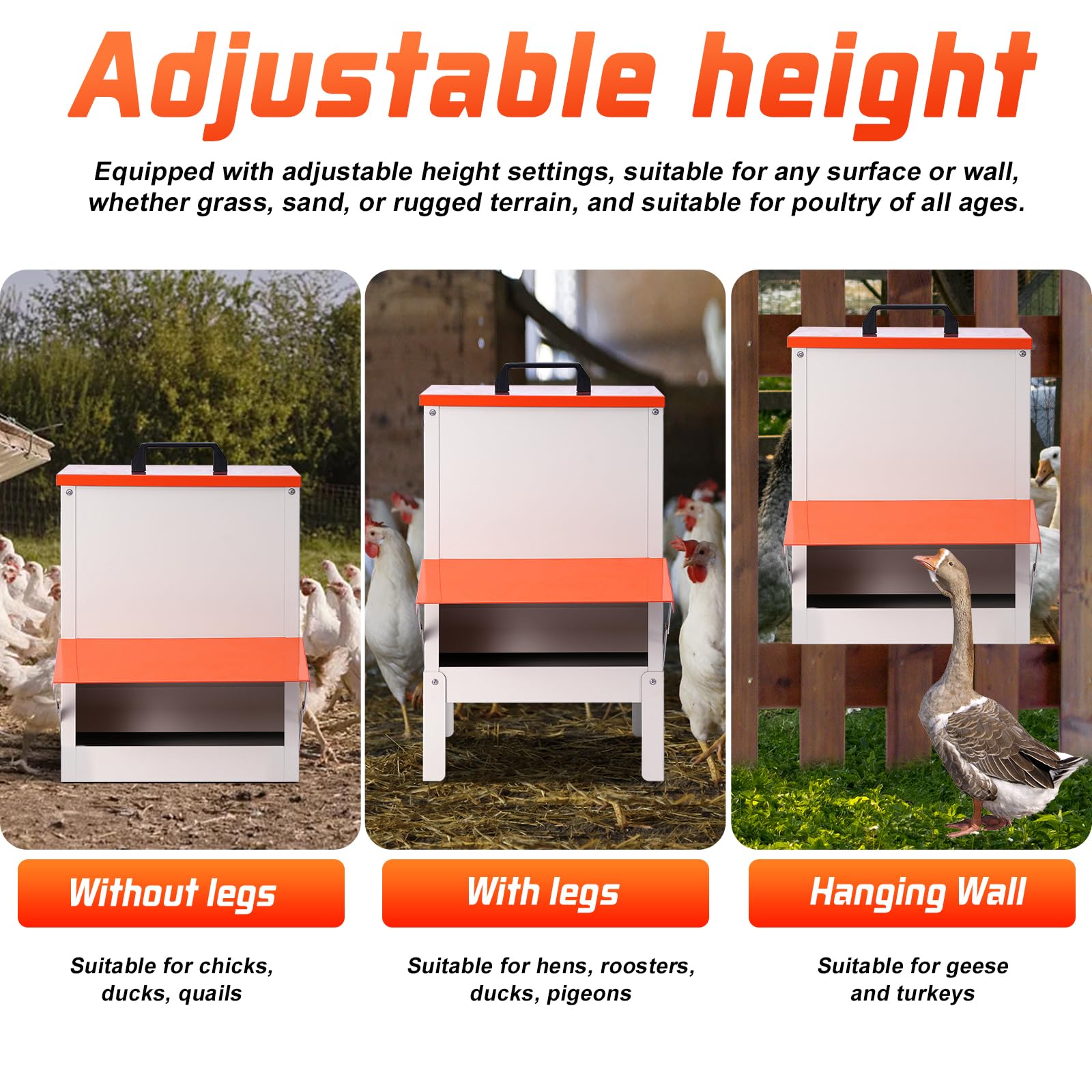 Chicken Feeders No Waste: Made from high quality metal material, the gravity automatic feeding system minimizes feed waste and ensures a continuous supply of feed for the chicken flock