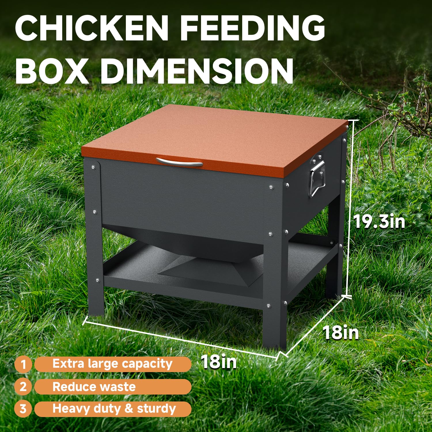 HIGH QUALITY CHICKEN FEEDER BOX - The automatic chicken feeder is constructed with heavy-duty galvanized steel material which sturdy, durable and rust-resistant to use, The chicken feeder is buit to long-lasting use and withstand extremely harsh weather, ONE REAL LARGE CHICKEN FEEDER MEET ALL YOUR POULTRY RAISING NEEDS.