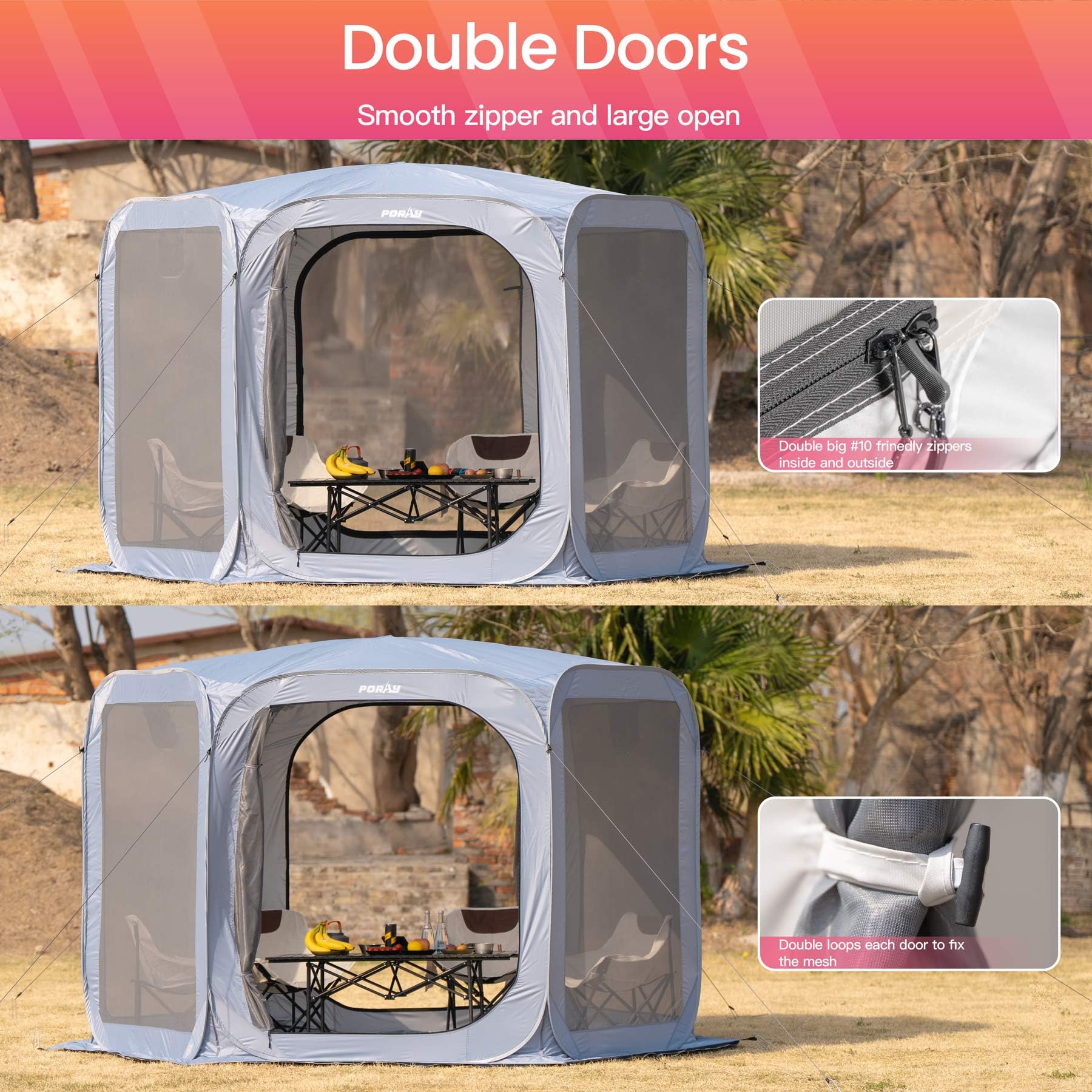 Porayhut Pop up Screen House Tent Sun Shelter with Breathable Mesh Doors,Portable Camping Tent with Detachable Waterproof Floor,10x10FT Screen Canopy Outdoor for Family Friends Party in Backyard,Park