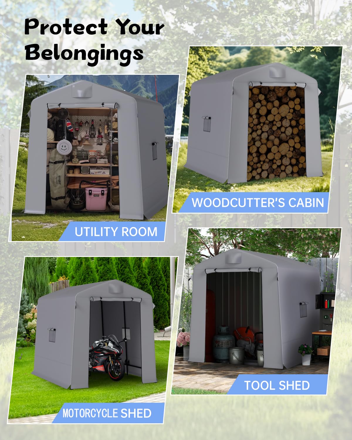 Portable Shed Outdoor Storage Shelter, 6x8x7 ft Instant Waterproof Storage Tent Sheds with Roll-up Zipper Door and Ventilated Windows for Motorcycle, Bike, Garden Tools(Grey)