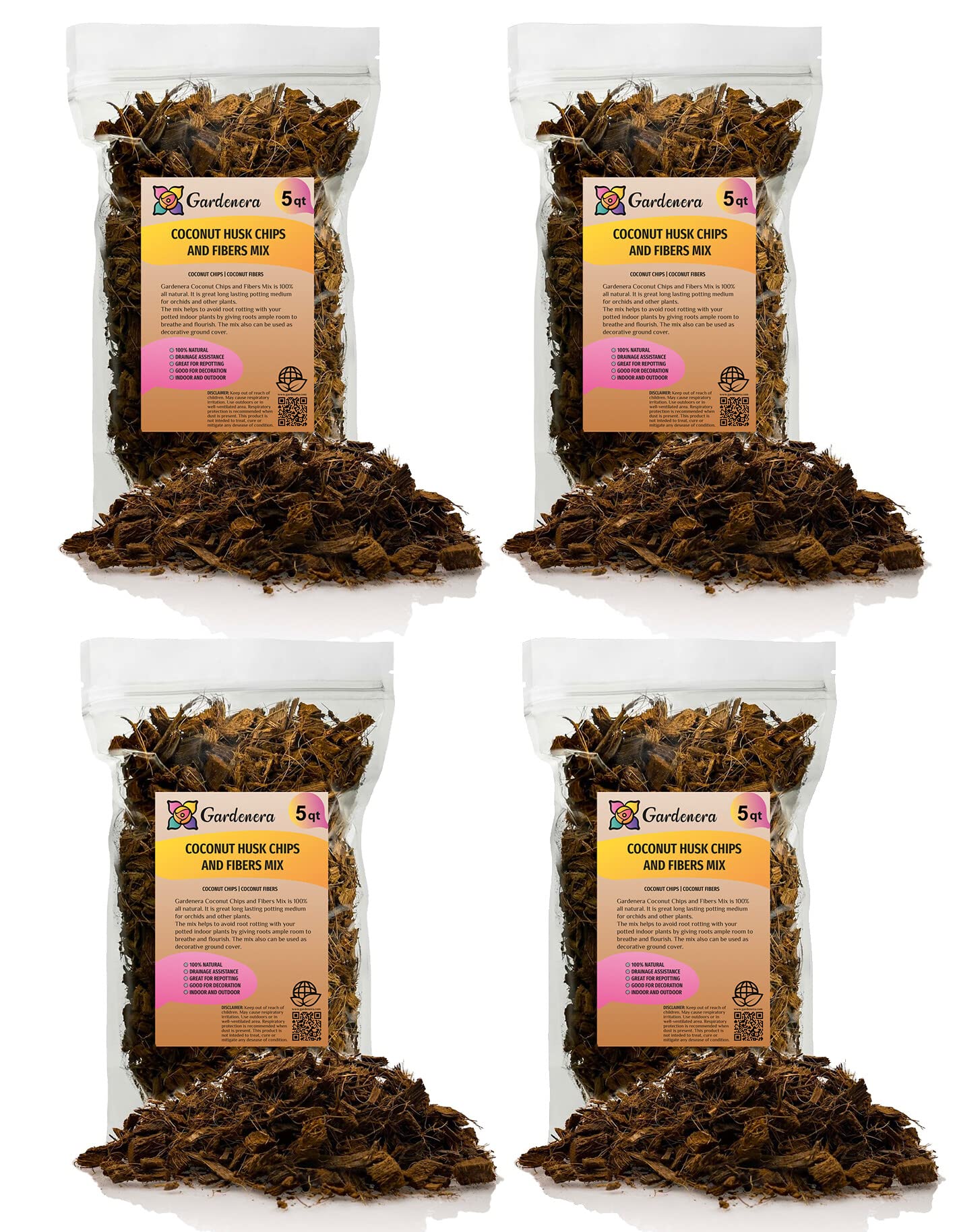 Premium Coconut Husk Chips and Fibers Mix for Orchids - 20 Quart - Houseplant, Monstera and Fiddle Leaf Fig by GARDENERA (4 Bags of 5 Quart)