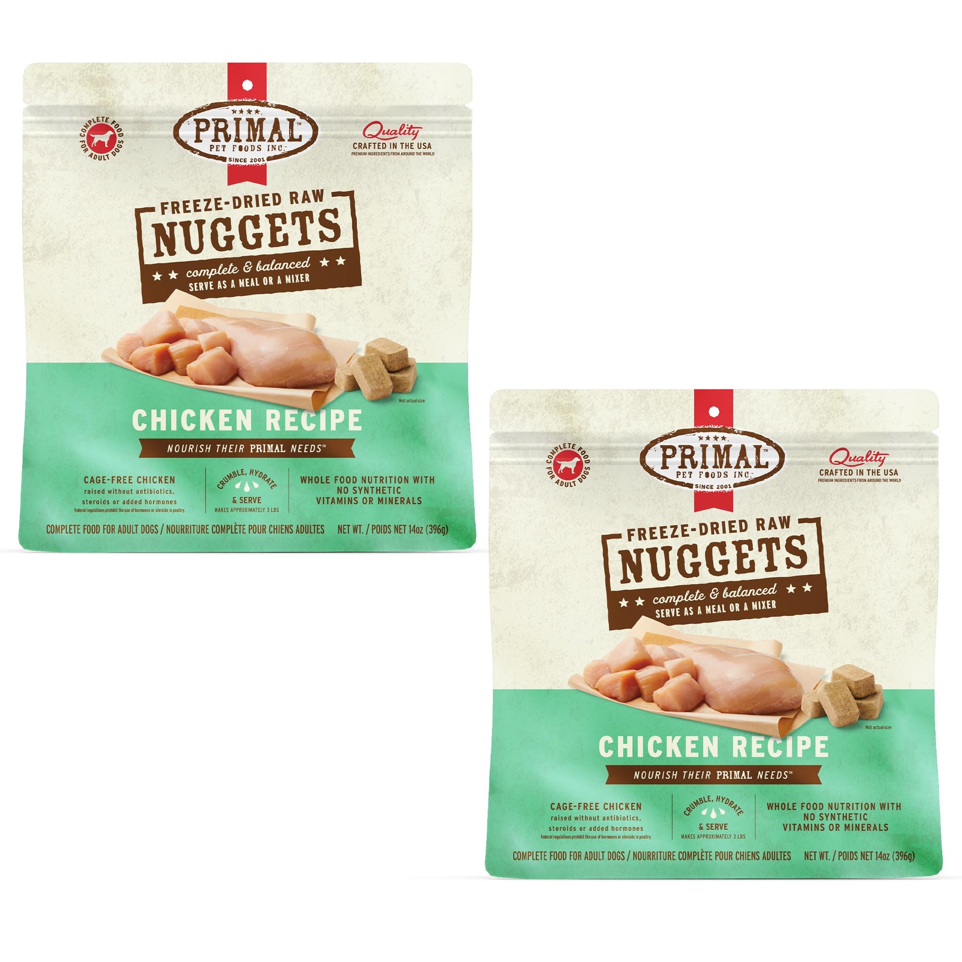 Primal Freeze Dried Dog Food Nuggets, Chicken; Complete & Balanced Meal; Also Use as Topper or Treat; Premium, Healthy, Grain Free, High Protein Raw Dog Food, 14 oz (Pack of 2)