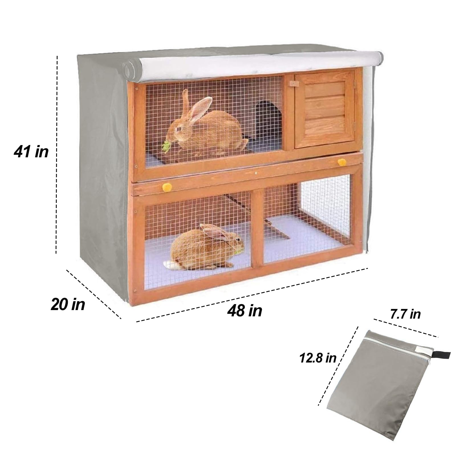 DIMENSION & NOTE: The poultry cage cover measures 48"L x 20"W x 41"H, which fits all 48" hutches with a roof size of 48"L x 20"D or under. please measure your rabbit cage size before purchasing.