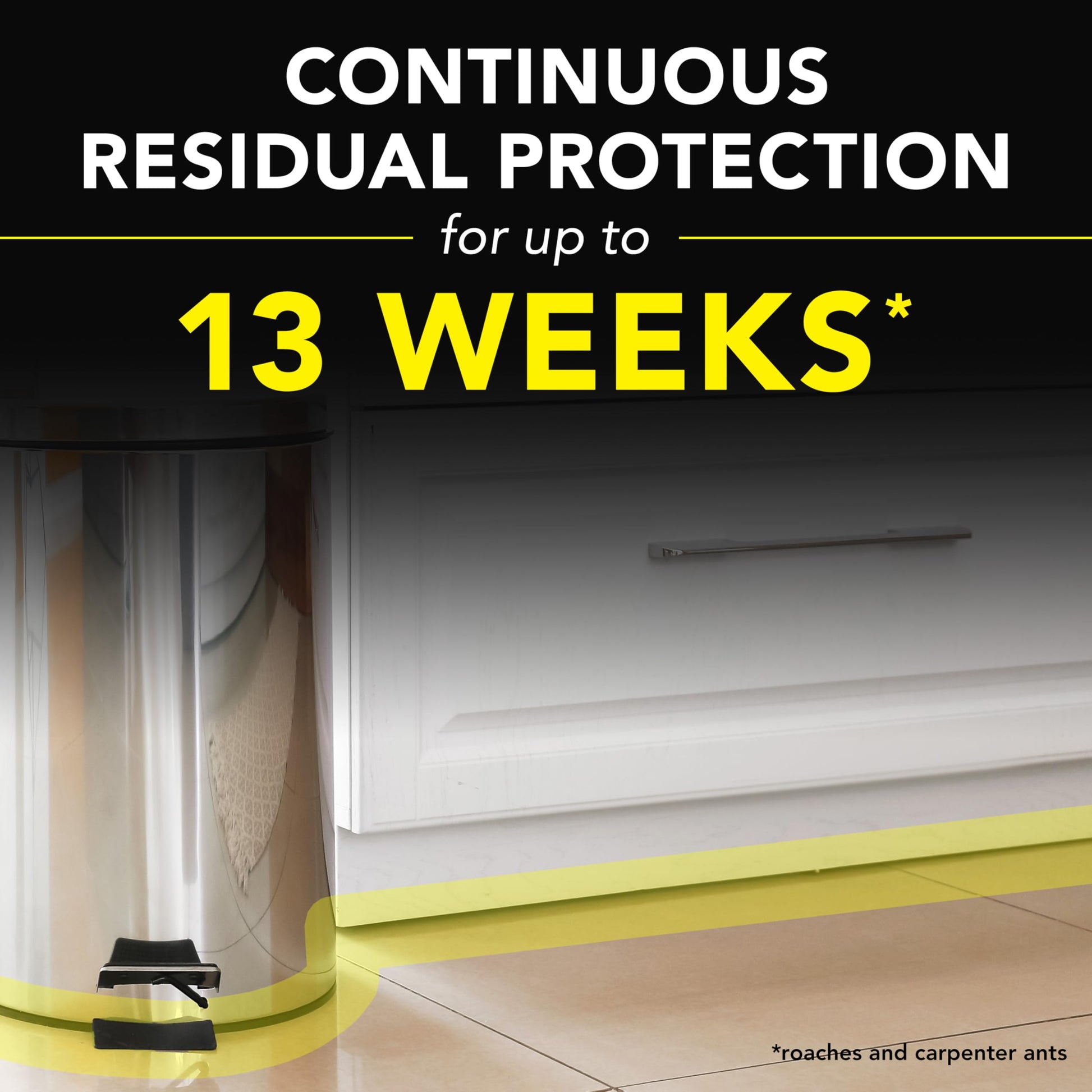 Kills on contact and keeps killing with residual action for up to 13 weeks* * Roaches and Carpenter ants