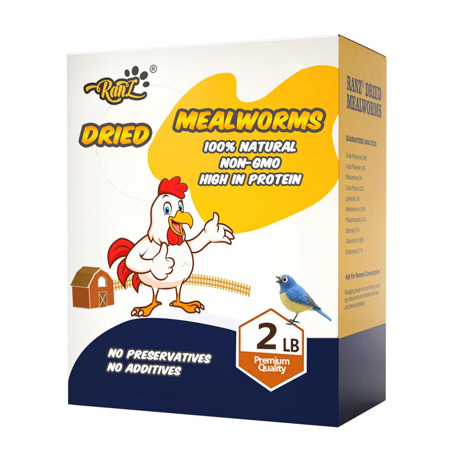 100% Natural, Non-GMO, High-Protein Dried Mealworms: RANZ Dried Mealworms are naturally sourced and free from any additives or preservatives, making them the ideal treat for chickens, wild birds, reptiles, turtles, fish, and more. Perfect for those seeking natural chicken feed, reptile snacks, or wild bird food.