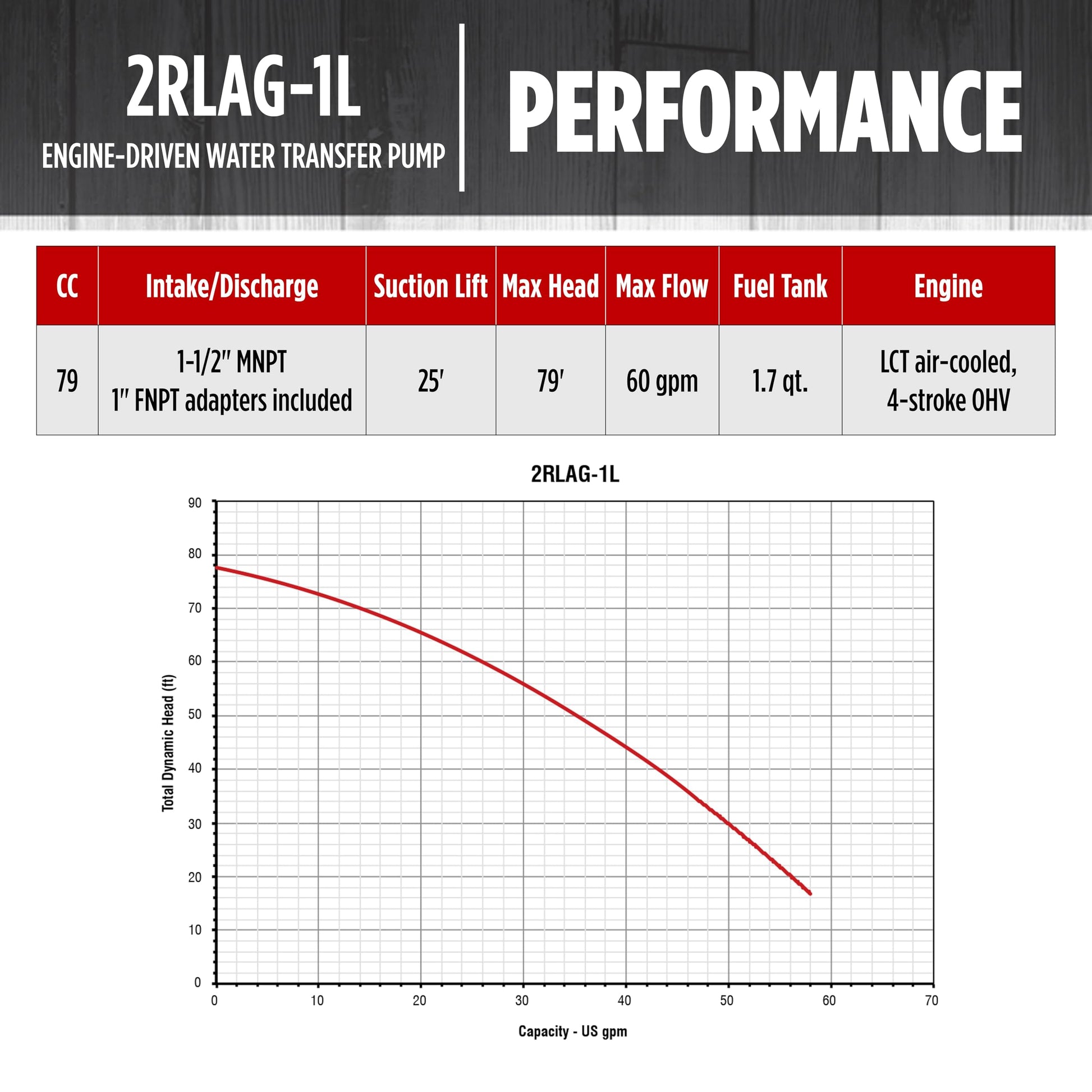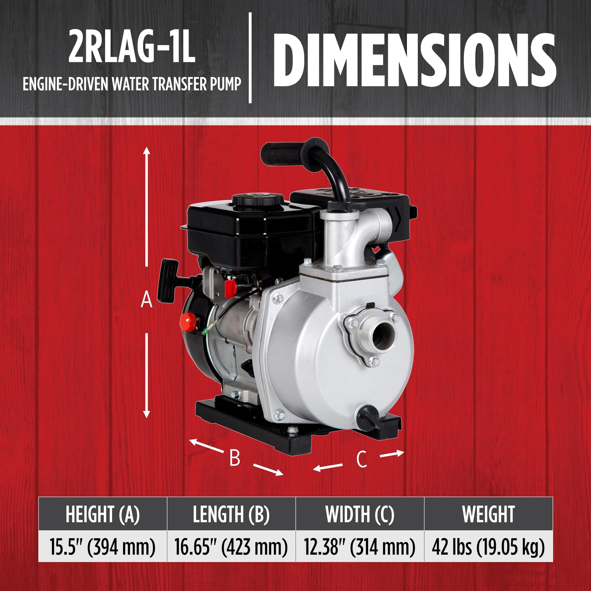 - GAS ENGINE DRIVEN WATER TRANSFER PUMP: Red Lion's lightest gas powered pump comes with a built-in carry handle, weighs 42 lbs.