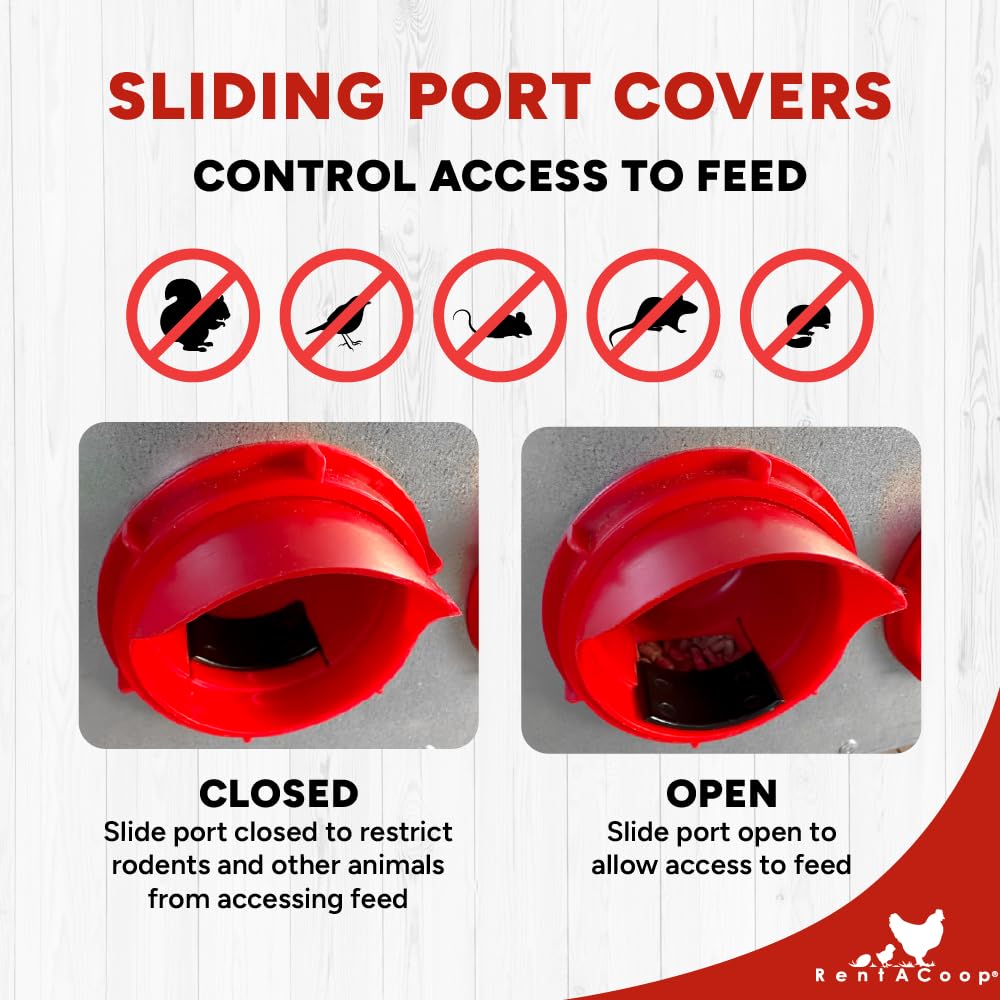 We Thought of Everything! | Innovative Port design to reduce waste and mess; Sliders to close off ports and keep pests away; Rain hoods to keep feed dry; Easy to carry with integrated handles!