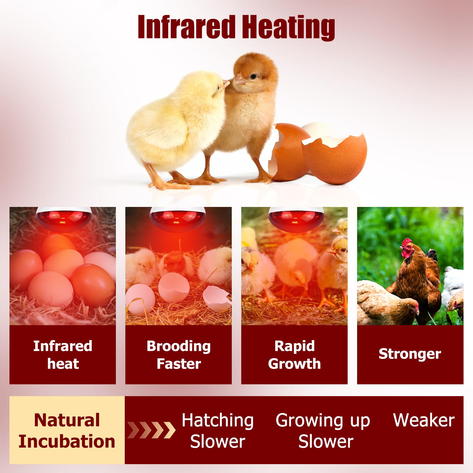【Efficient heating】 REPTI HOME R125 infrared heat lamp for chicken, can heat up quickly and evenly. 250W power provides powerful heat output for your pets. it ensures that your chicks get enough warmth in cold conditions.