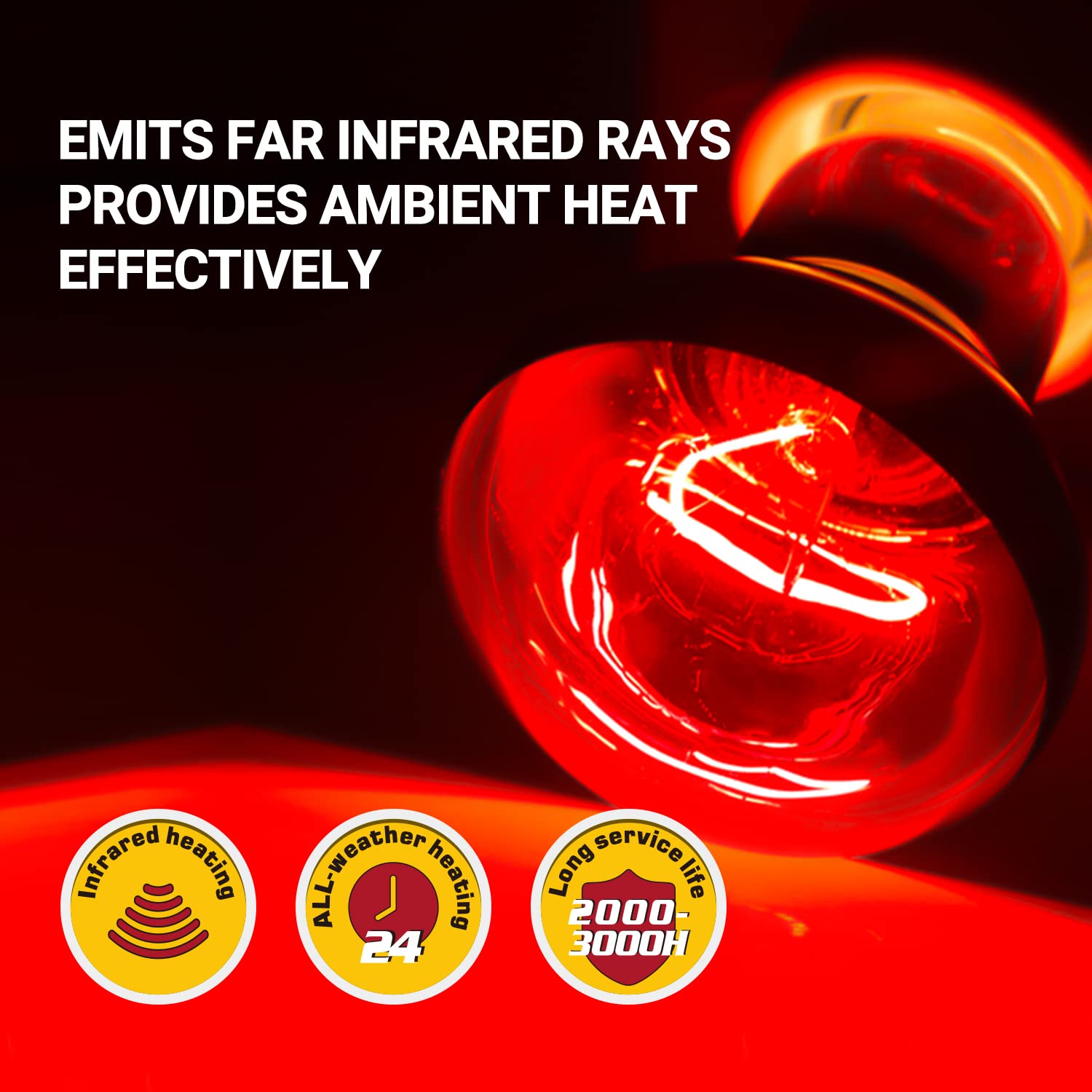 【Infrared Heat Lamp】Our red infrared heat lamp provides a powerful source of infrared heat emissions for animal pets(chickens reptile pets) requiring heat at day and night without light output generated by infrared lights.