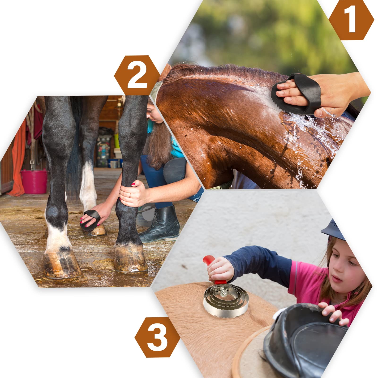 Reversible Stainless Steel Curry Comb with Large Rubber Brush for Grooming Horses, Dogs, Goats, Cattle, Cow, Donkey Supplies