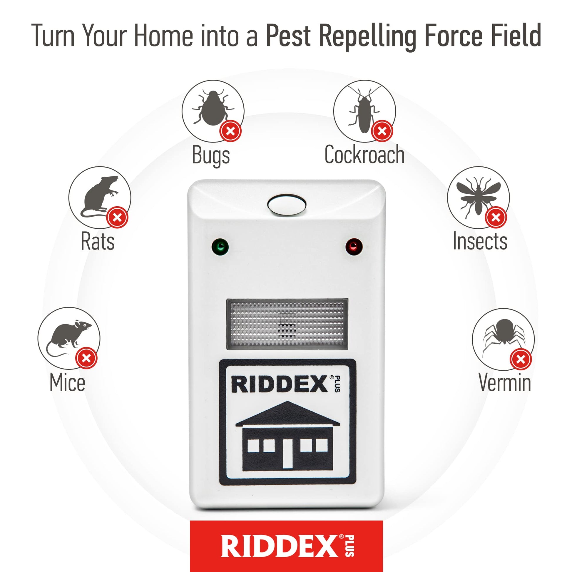 🐀 PEST CONTROL FOR MICE, RATS, INSECTS & BUGS: Riddex’s vision and goals are to provide a hassle-free rodent defense for your home that protects and solves insect issues before they start. Our simple Riddex pest repeller plug-in is a one-stop solution for rats, mice, and insects infesting your home. The indoor pest control has a low-profile design so you and your family will hardly notice your rodent-repelling force field.