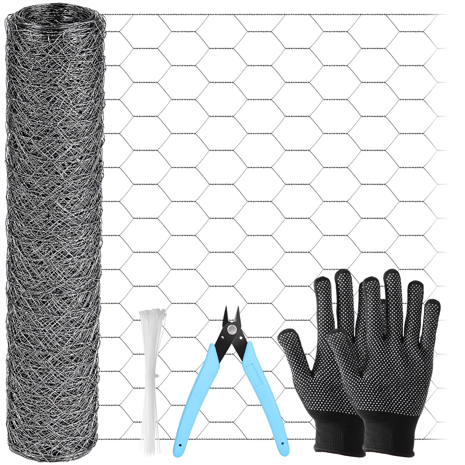 【157 in Sufficient Length】1 Roll chicken wire mesh of 13.8 in (W)x 157 in (L), smartly designed for whatever you need casually in a large amount of area. In addition, our set also provides 1 pair of cotton gloves, 1 pair of pliers and 45 pcs zip ties. The complete set allows you to get started right away.