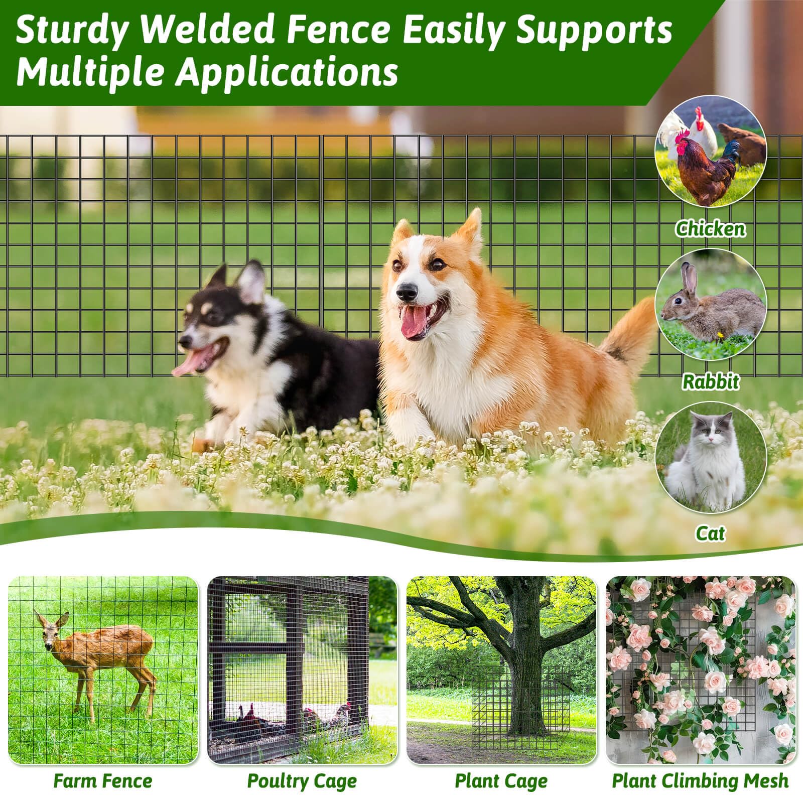 【With 4 Practical Tools】The welded wire fence can be used not only as a garden fence but also for DIY crafts such as chicken coops, wire plant protectors cages, plant climbing frames, trunk fence, vegetable fence, garden trellis and more. The included zip ties, U-shaped garden nails, scissors and gloves can help you finish the craft easily