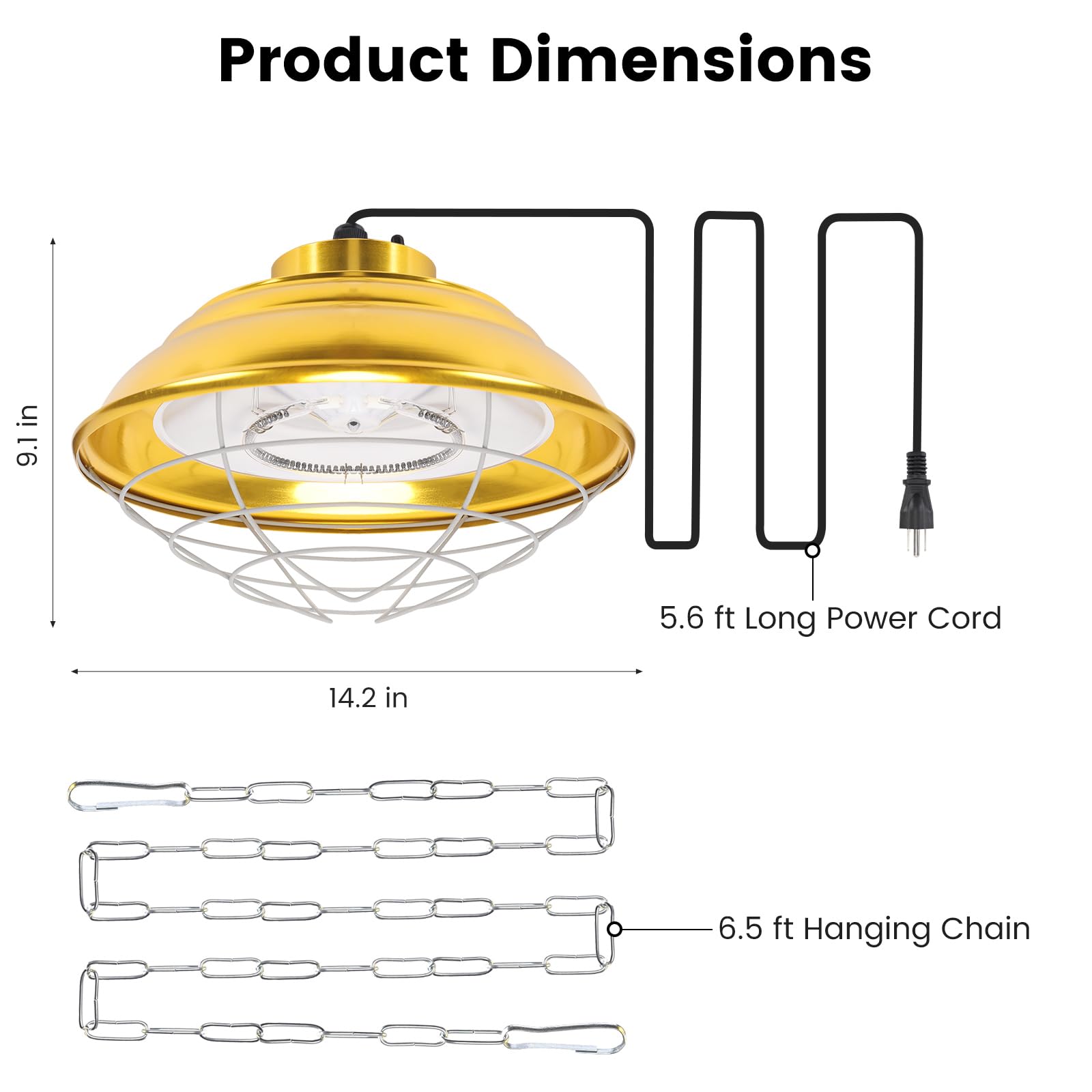 Easy to Install: Install the metal mesh cage, adjust the hanging height by the 6.5 FT chain, Plug in and start to use.