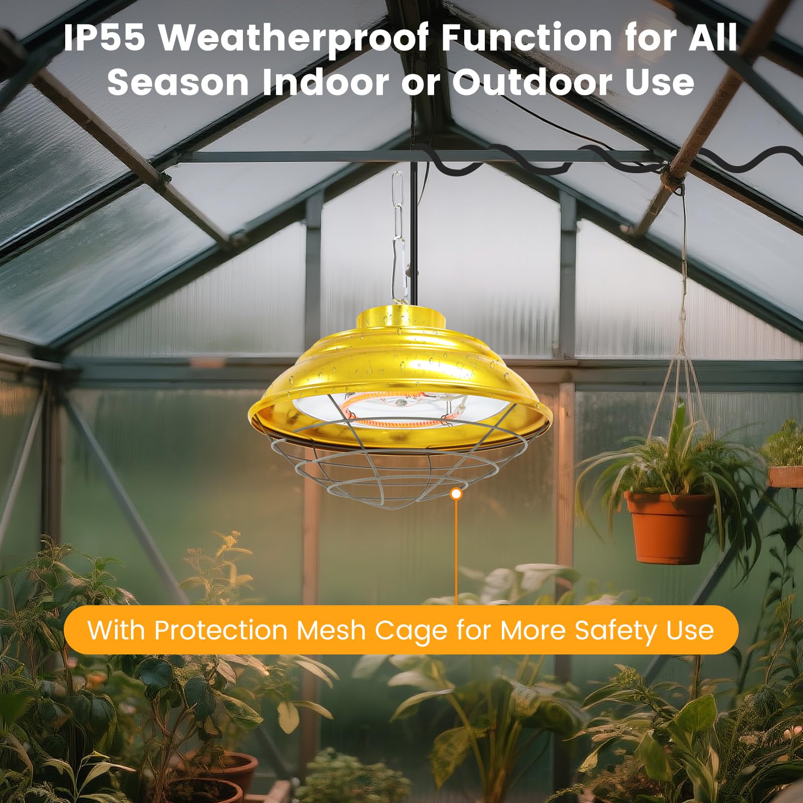 Waterproof Poultry Heater: Waterproof feature gives you peace of mind for your poultry space heating. The whole heater body and switch is waterproofed.