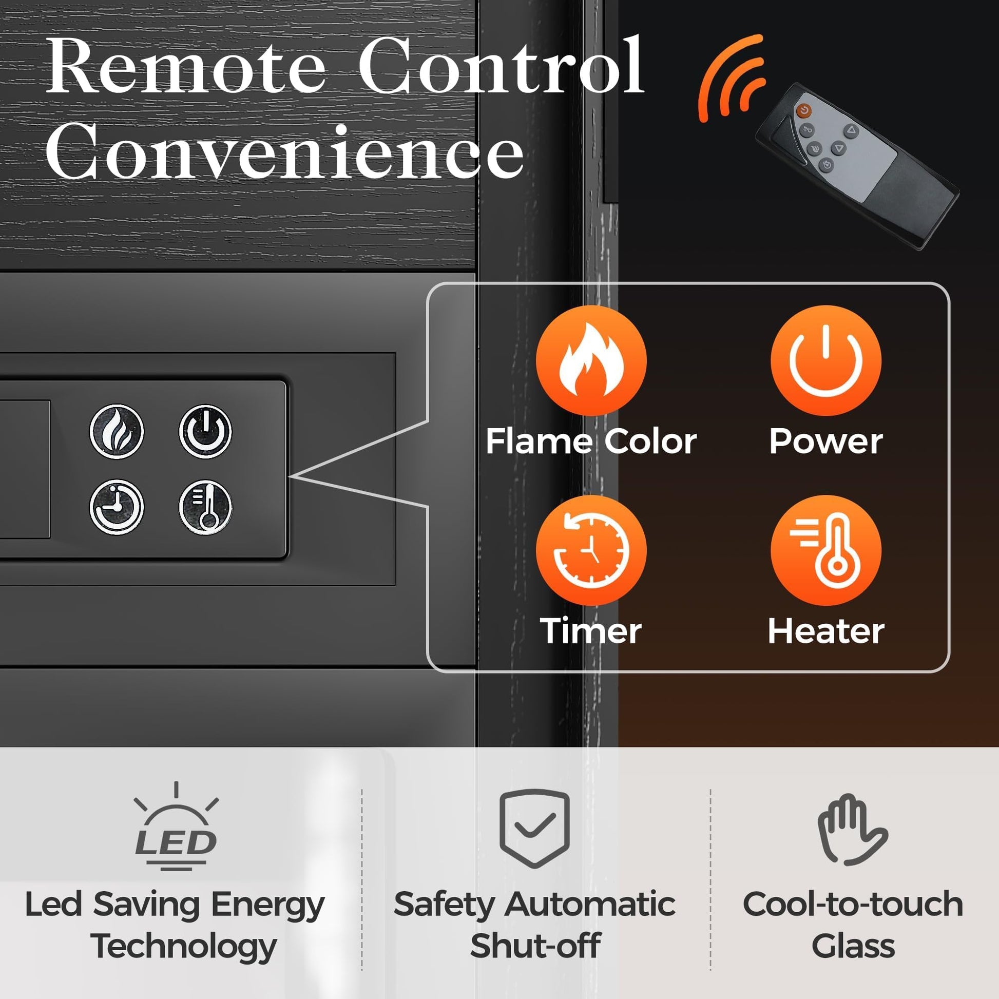 Effortless Control, Elevated Safety: Operating this tv stand fireplace is as easy as 1-2-3-4 with its intuitive function keys. Prefer remote control? It's got you covered. CSA certification and smart overheating protection ensure your relaxation with complete ease.