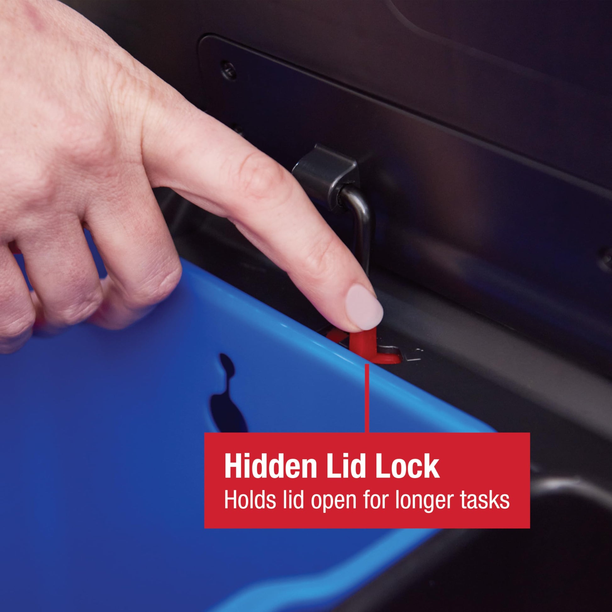 LID LOCK: Extended open lid lock keeps the container open for longer tasks and chores.